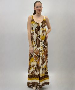 Abito lungo con spalline e fantasia floreale.