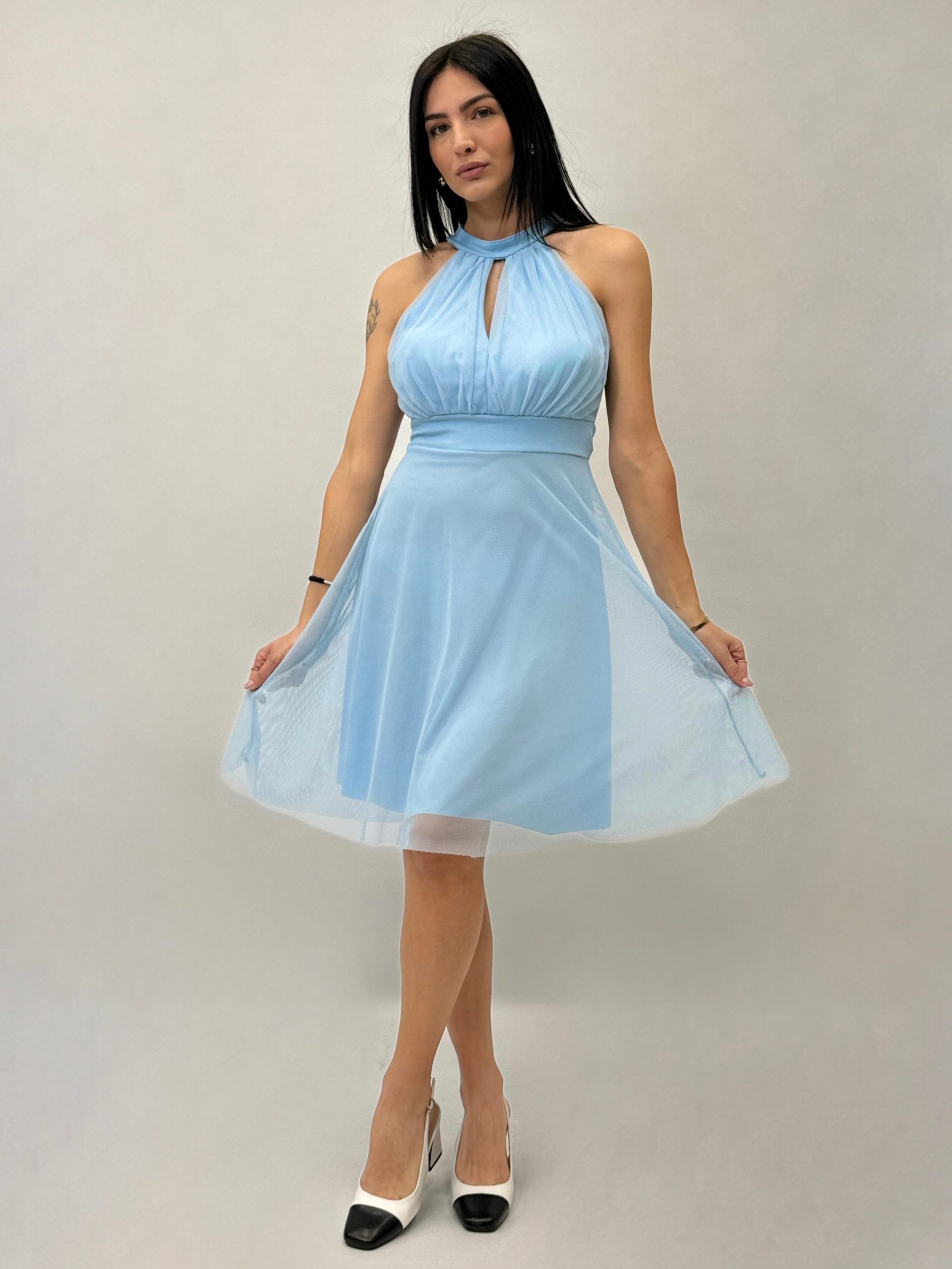 Abito Marisa corto. Collo alla americana. Elasticizzato. Con coppe preformato.
