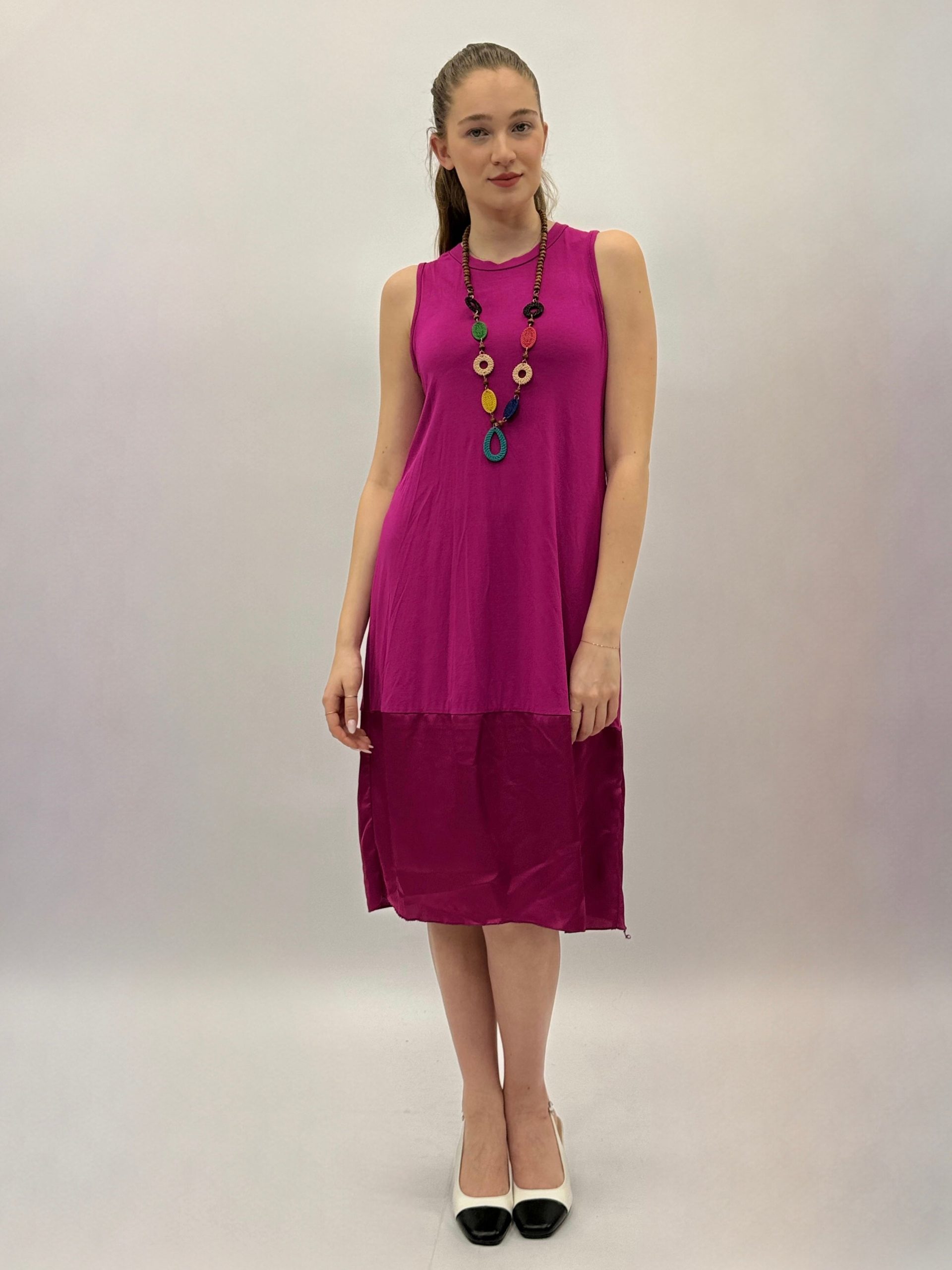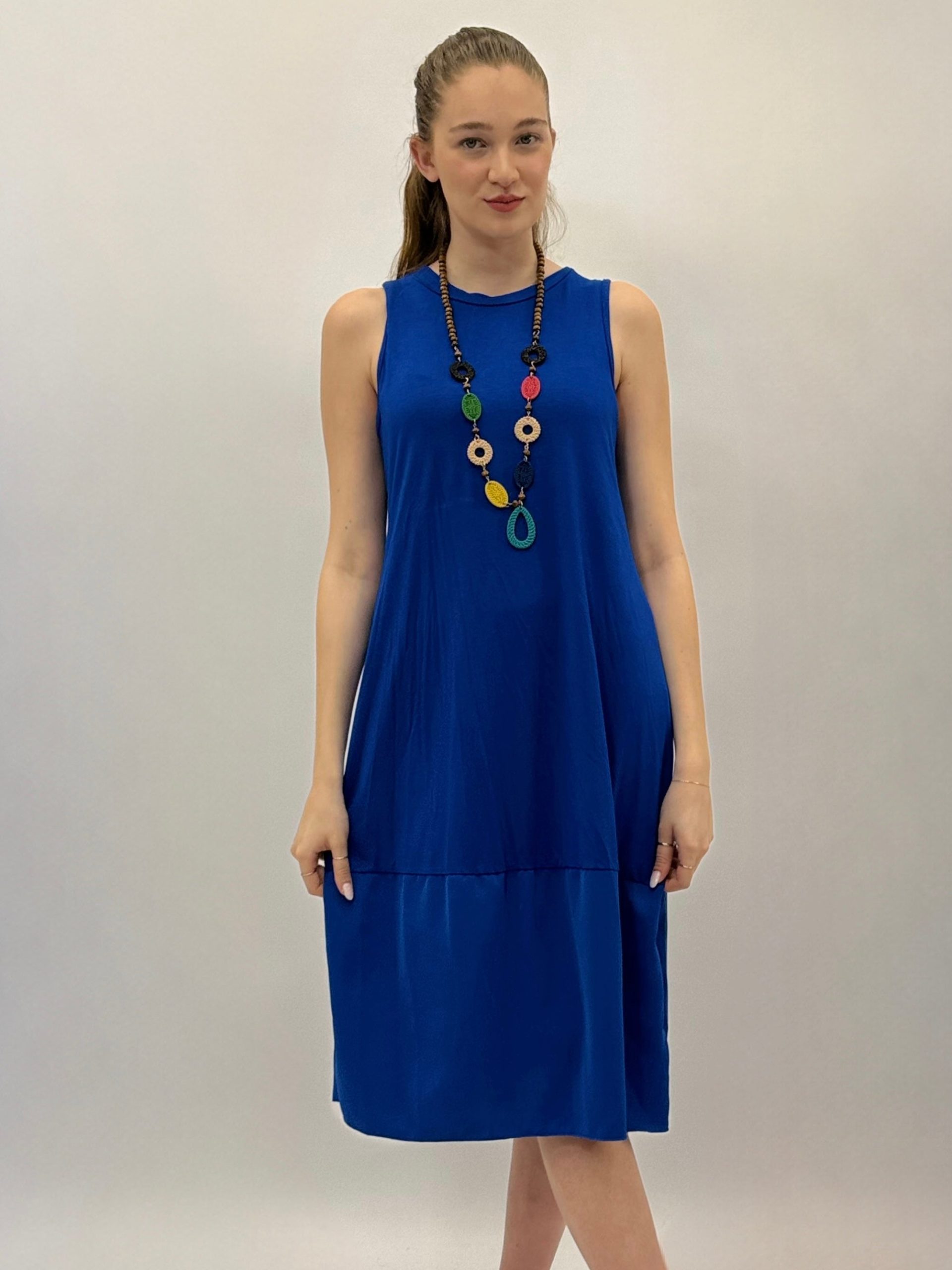 Abito tinta unita lungo con dettaglio collana