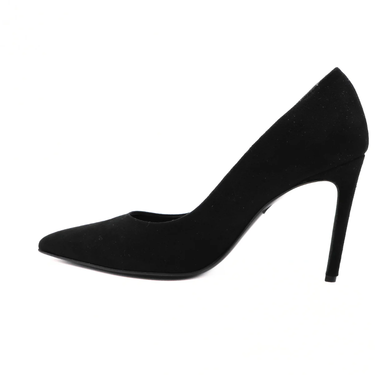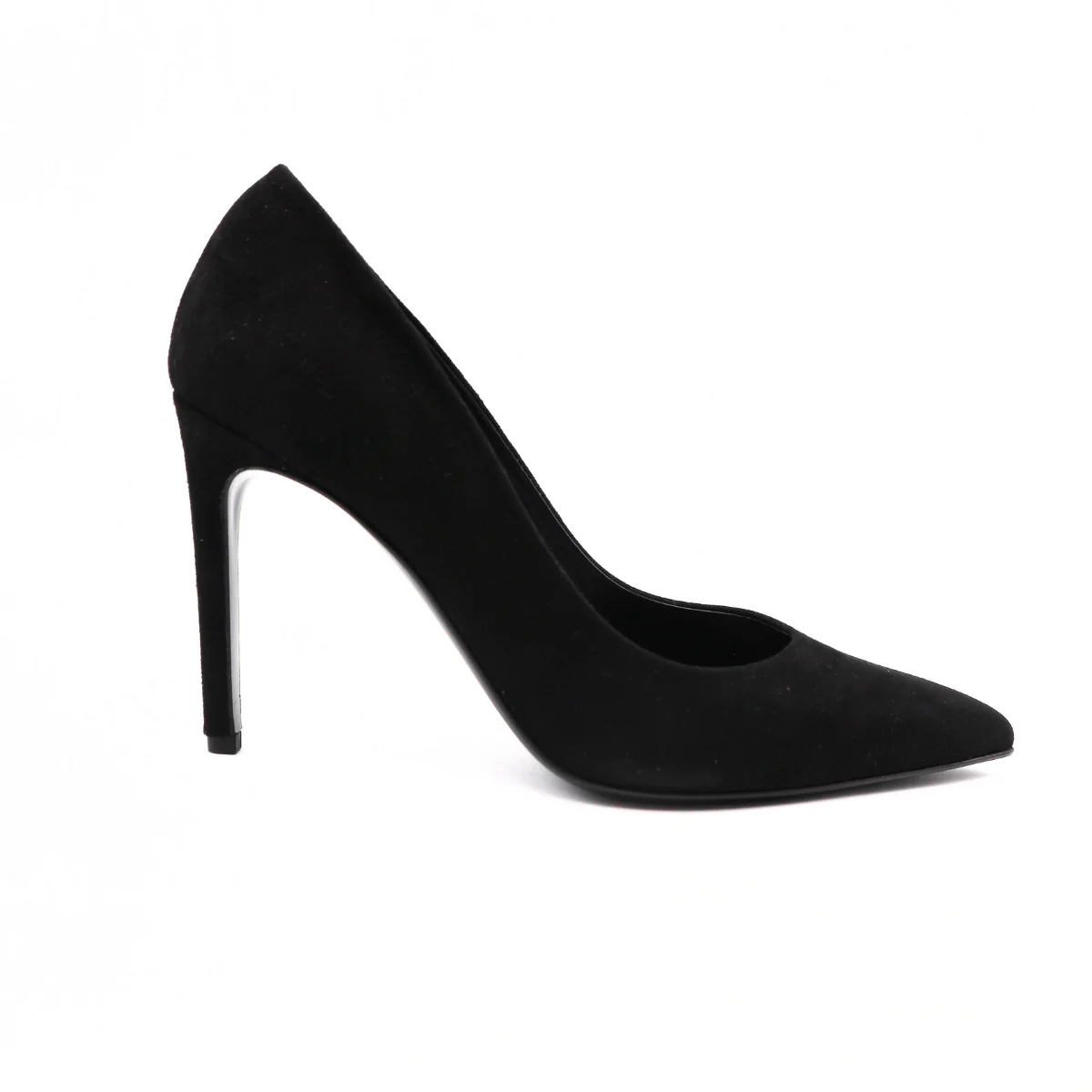 Décolleté di ALESSANDRA PELUSO realizzata in camoscio nero. Interno e sottopiede completamente rivestiti in pelle e suola in cuoio. Realizzata a mano.