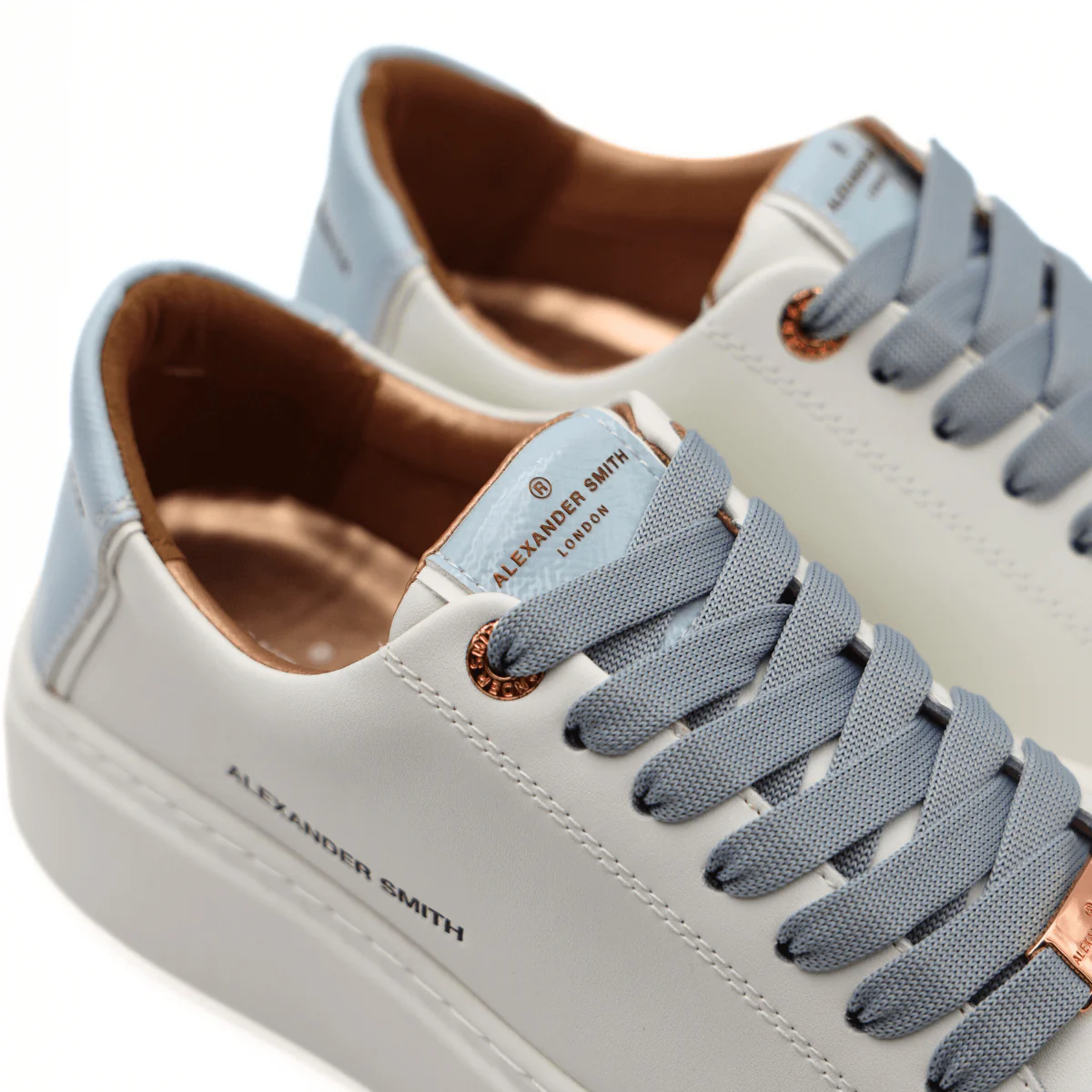 Semplice e minimalista ma allo stesso tempo in grado di racchiudere il carisma dell’intera azienda con pochi semplici dettagli. Questo modello in pelle di ALEXANDER SMITH presenta una rivisitazione del logo che ne sottolinea il carattere e la personalità. Variante bianca con tallone e dettaglio azzurro laccato.