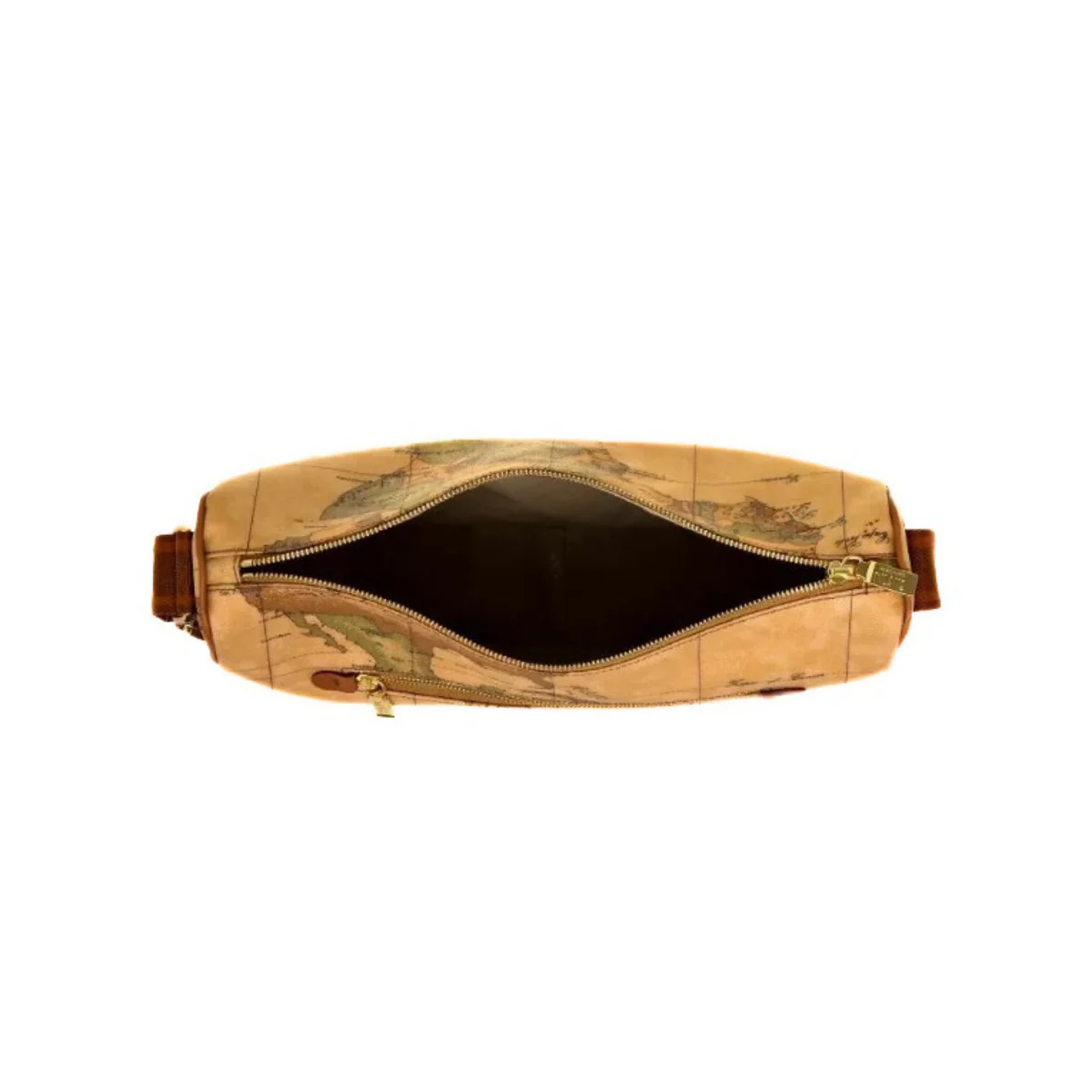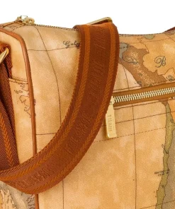 Borsa a tracolla di ALVIERO MARTINI 1^ CLASSE in tessuto stampato con cartina geografica Geo Classic, con linea a mezzaluna, tasca frontale, taschine laterali, tracolla regolabile in nastro con logo 1AClasse.