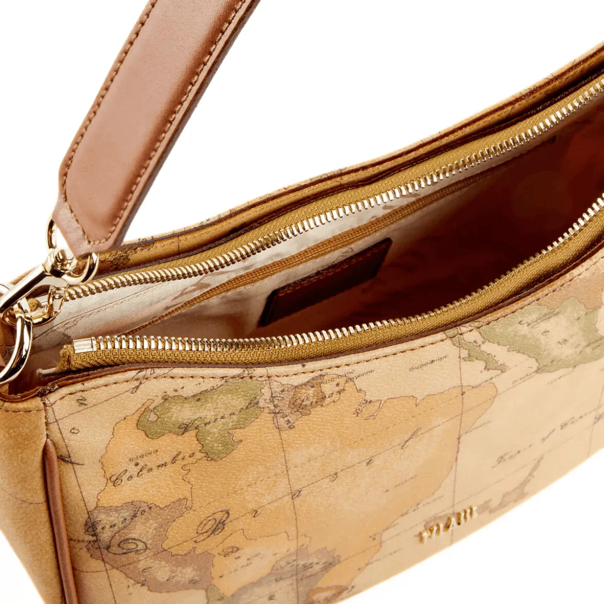 Borsa mezzaluna da donna di ALVIERO MARTINI 1^ CLASSE realizzata in tessuto Geo Classic Interno unico comparto con tasche accessorie. Manico e tracolla in pelle, removibili. Chiusura con cerniera.