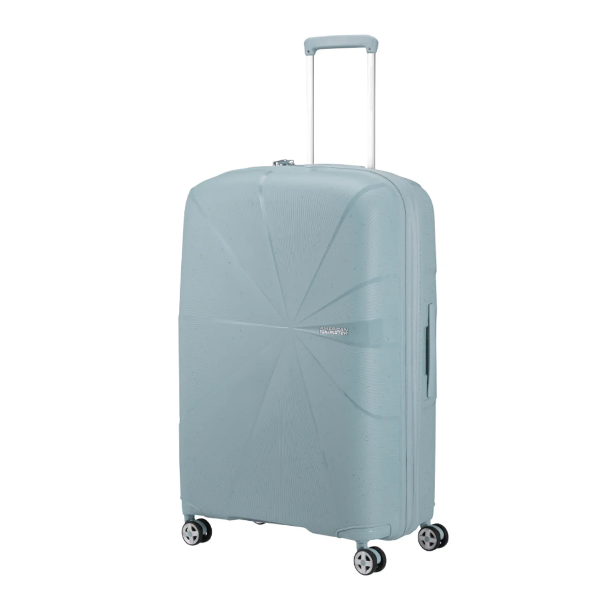 Trolley grande rigido, della linea STARVIBE di AMERICAN TOURISTER dal design unico e avanzate tecnologie. Realizzato in Polypropylene. Vano interno organizzato con divisorio e cinghie elastiche. Chiusura con combinazione e sistema TSA. Quattro ruote bidirezionali . Carrello bitubo. Valigia espandibile.