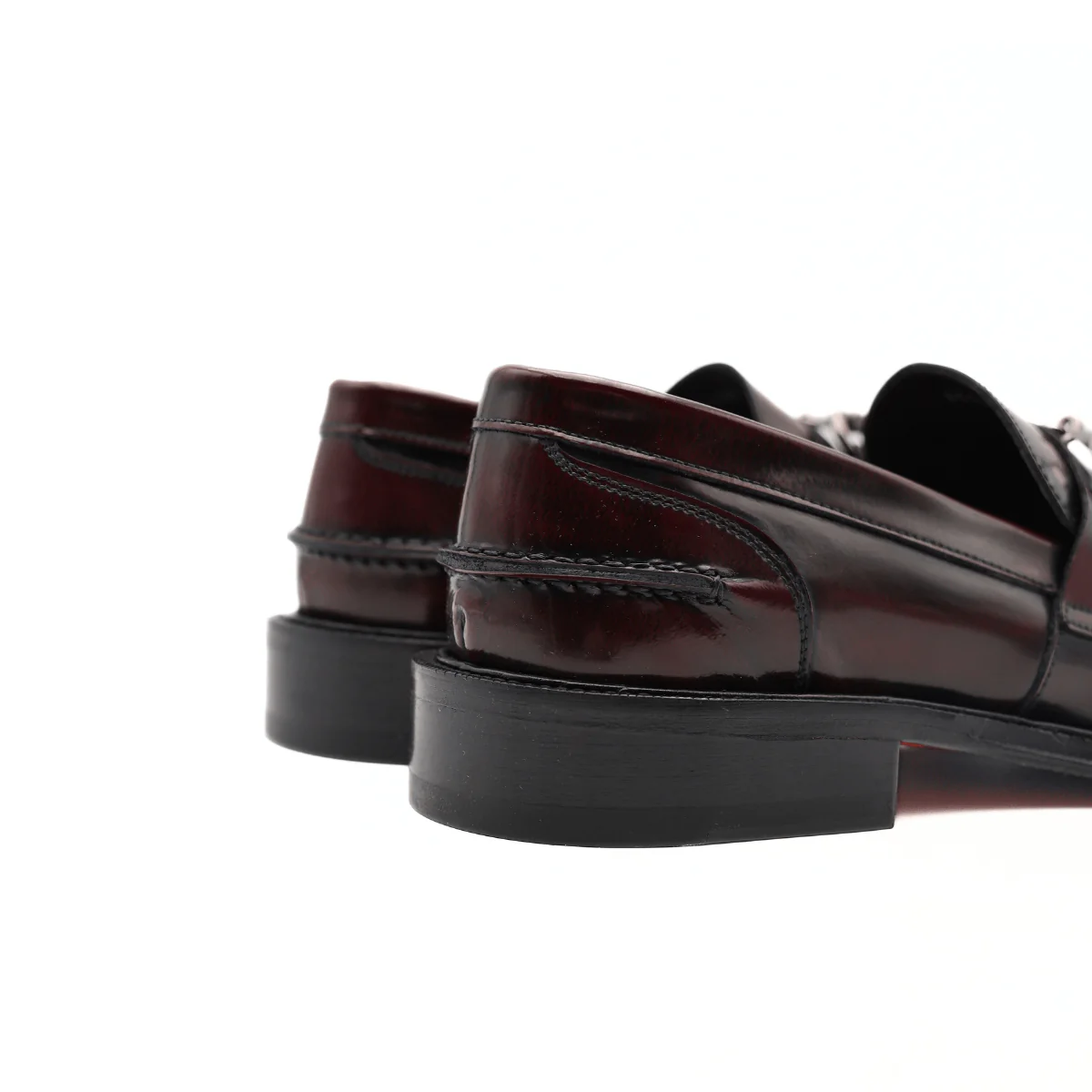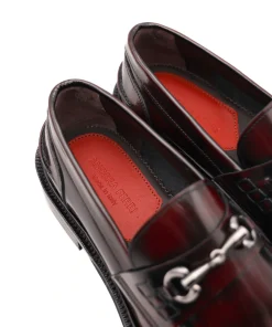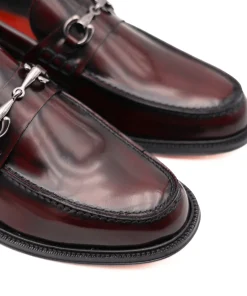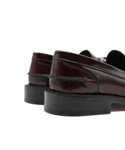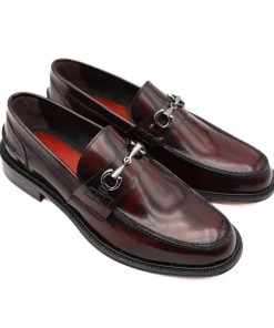 Mocassino da uomo di ANDREA FERRI realizzato in pelle spazzolata bordeaux con accessorio argento. Interno e sottopiede, non estraibile, in pelle. Suola in cuoio (3cm).