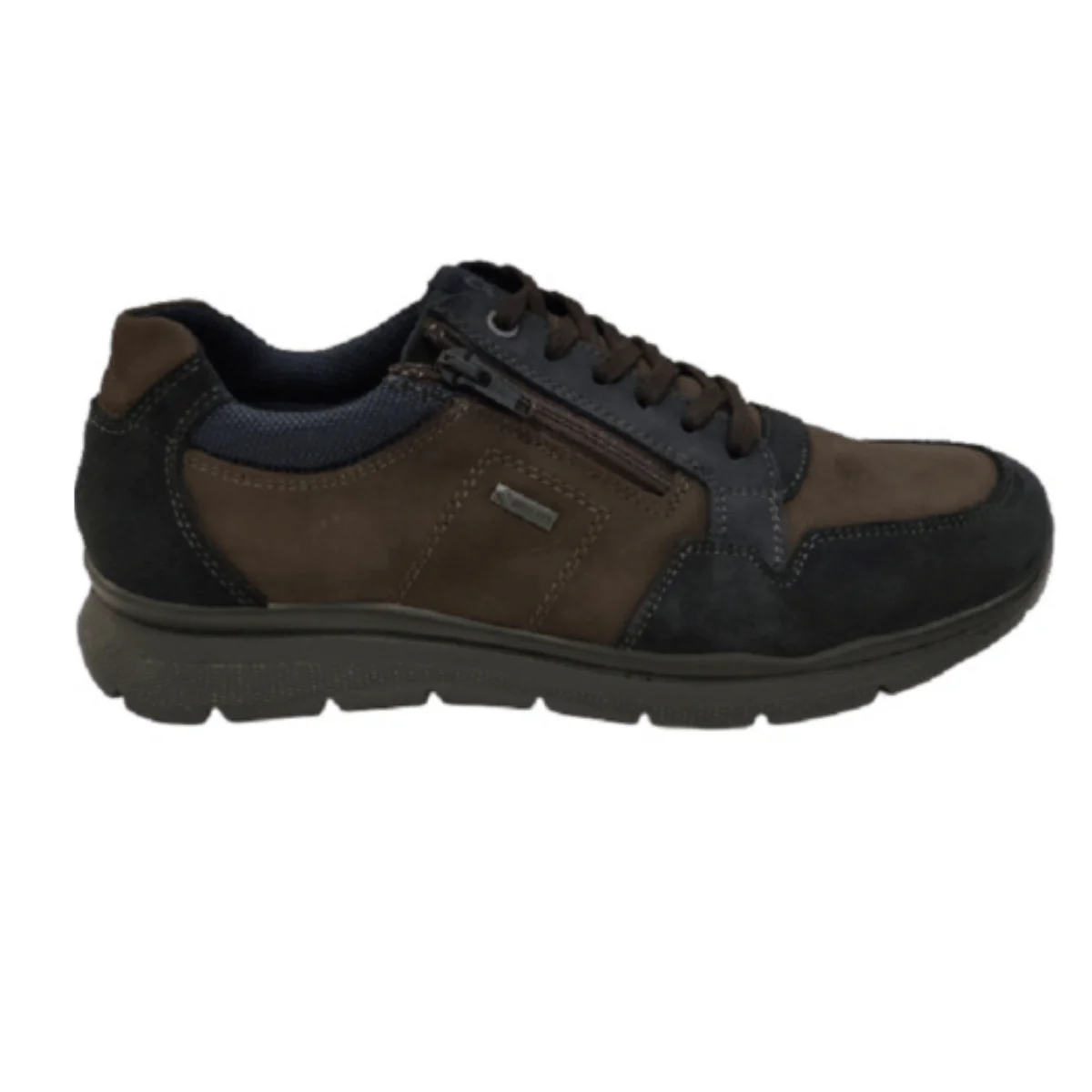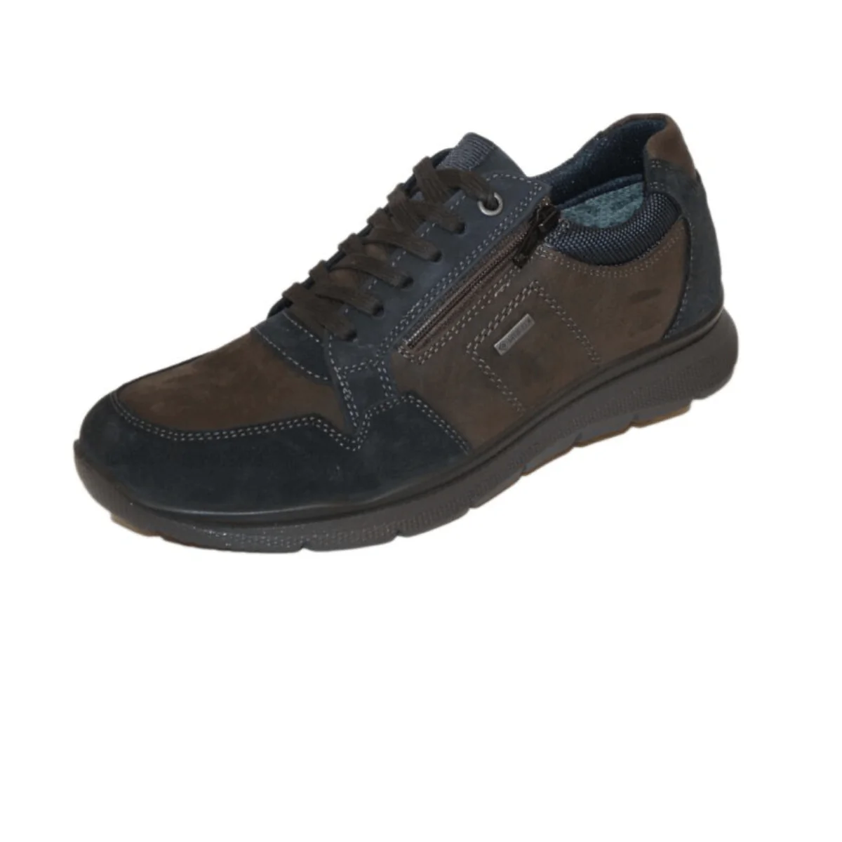 Sneakers casual da uomo di ARA. Tomaia realizzata in pelle color blu e camoscio color marrone. Interno foderato in tessuto con sottopiede, High Soft, estraibile. Chiusura con lacci. Suola in gomma.