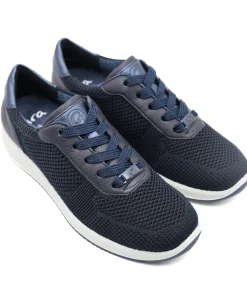 Leggera sneaker donna in tessuto simil ricamo treccia maglia, di ARA. Tomaia realizzata in elastico tessile e riporti in pelle. Internamente fodera a base di bambù, traspirante e dermocompatibile per il micro clima del piede; sottopiede anatomico HighSoft, ammortizzato ed estraibile. Suola in gomma leggera ed ammortizzata, chiusura con strighe.