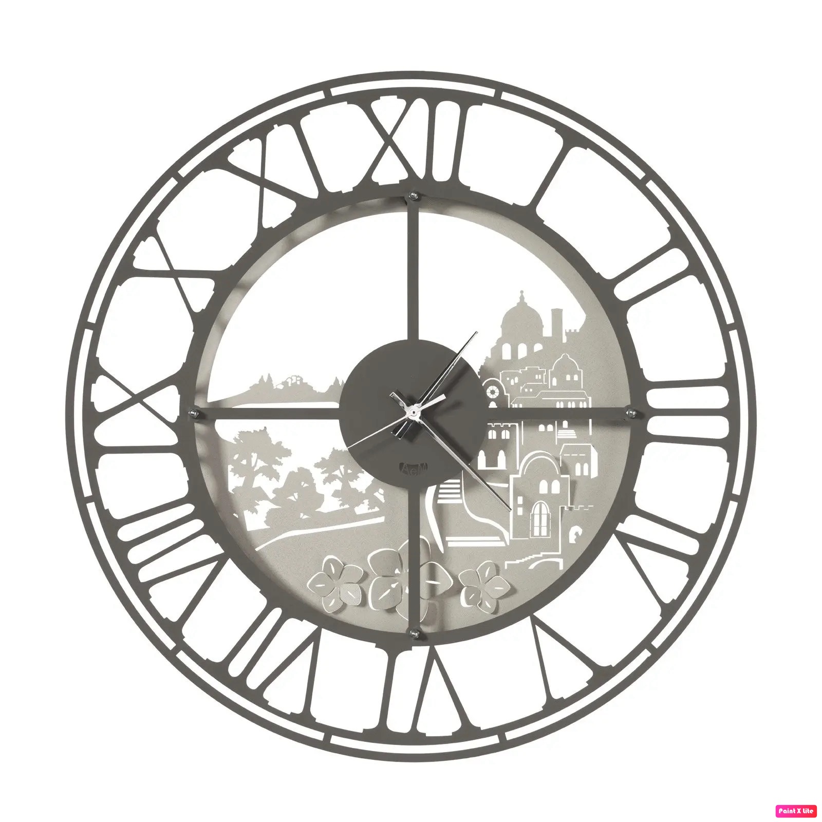 L’orologio da parete ideale per coloro che amano l’Italia. Svariati panorami sono rappresentati intorno al quadrante, all’interno della cornice di numeri romani presente.