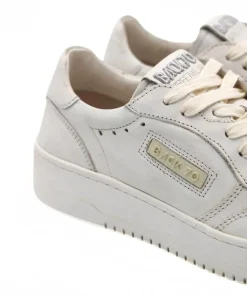 Sneaker da donna, di BACK70. Realizzata in pelle bianca. Internamente foderata in pelle e tessuto con sottopiede estraibile. Chiusura con lacci. Suola in gomma.