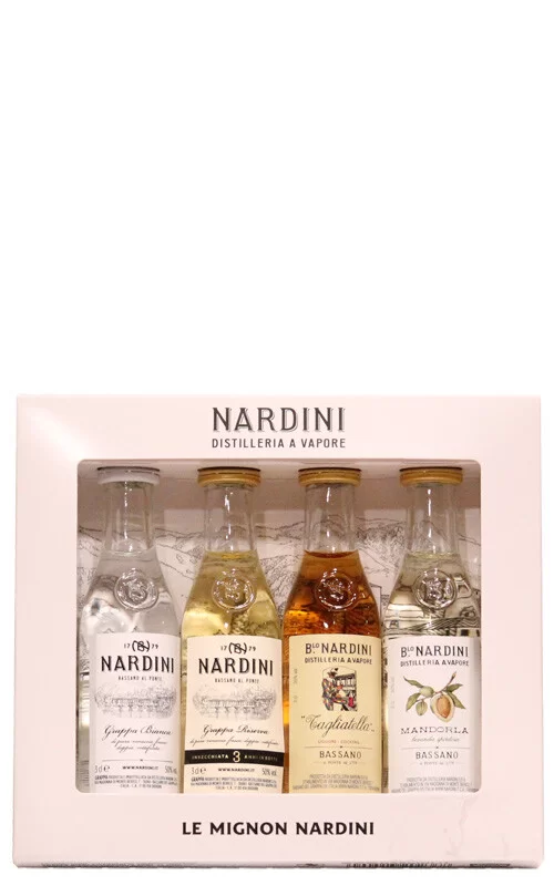 Un regalo per veri appassionati di grappe, per far scoprire parte del mondo Nardini a chi ancora non lo conoscesse: 4 mignon di 4 diverse grappe Nardini, per tutti i gusti!