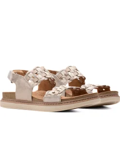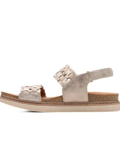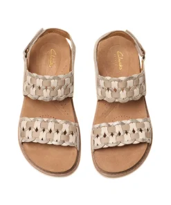 Sandalo da donna di CLARKS. Realizzato con una tomaia in nabuk intrecciato in metallo scintillante. Plantare Contour Cushion per supportare ogni tuo movimento, mentre una finitura leggera e aderente ti mantiene stabile sui piedi – dal giardinaggio alle fughe in spiaggia. La suola flessibile e stratificata in TPR (gomma termoplastica) garantisce una presa ottimale sotto i piedi. Altezza del tacco: 35mm