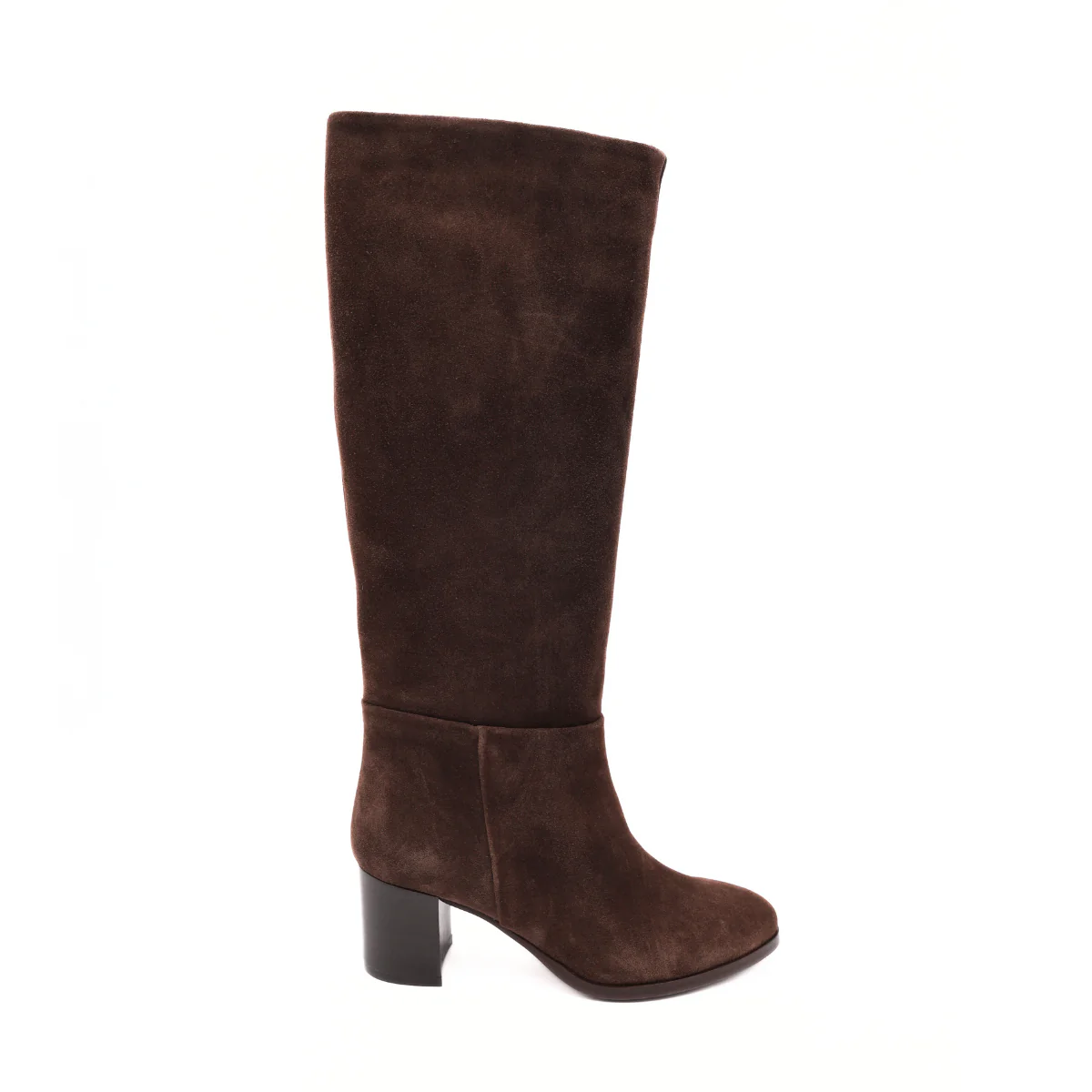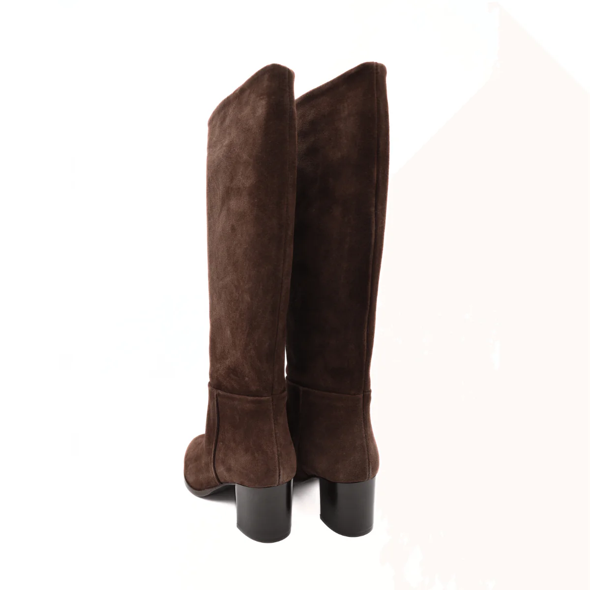 Stivale da donna di ELISA LANCI in pelle scamosciata marrone. Interno foderato in pelle con morbido sottopiede non estraibile. Suola in gomma.