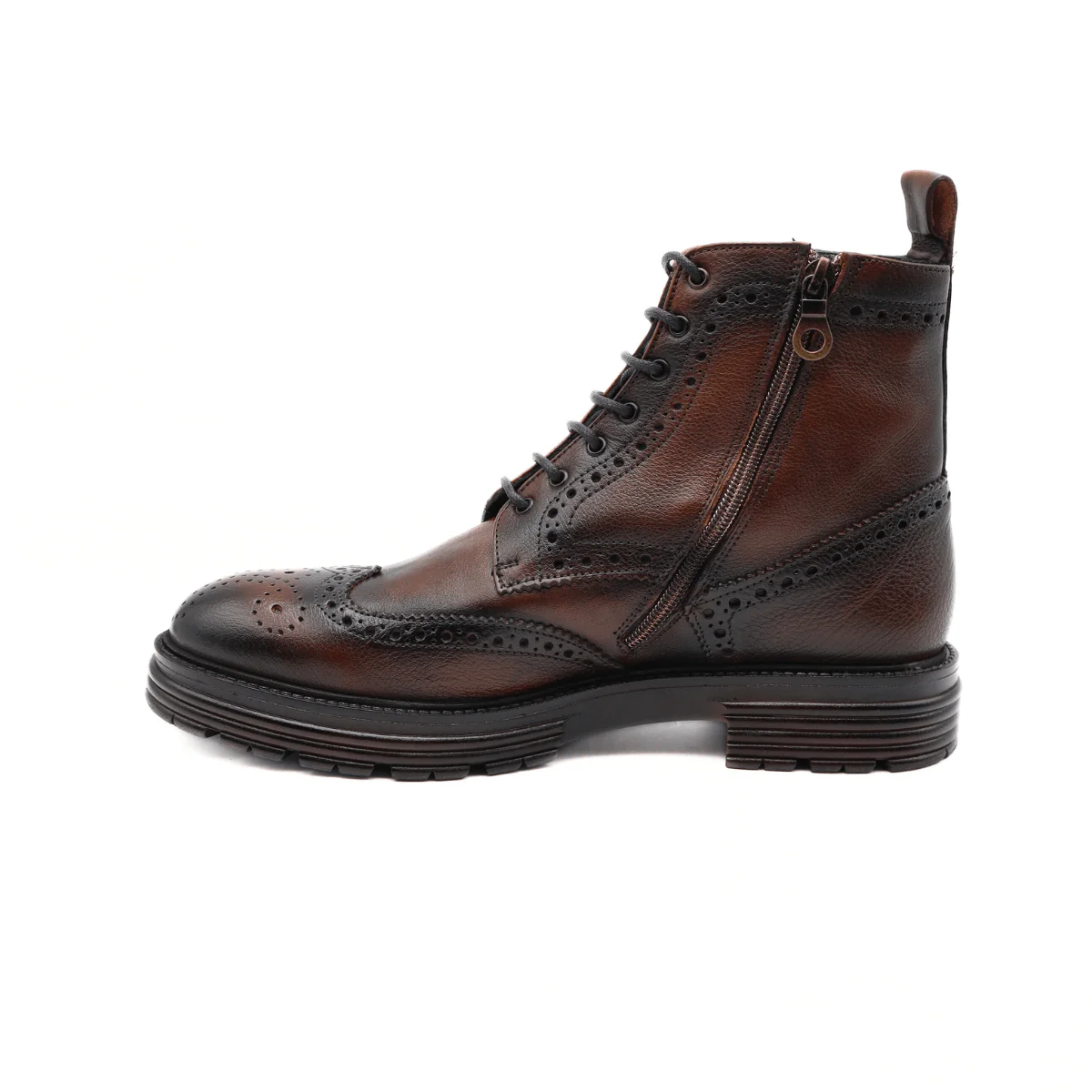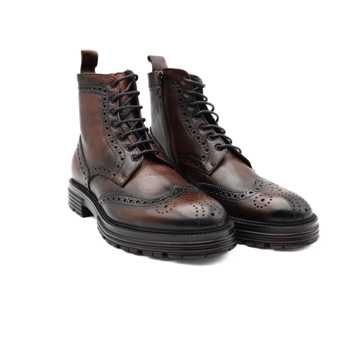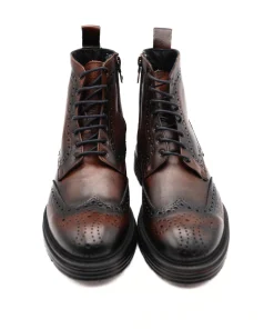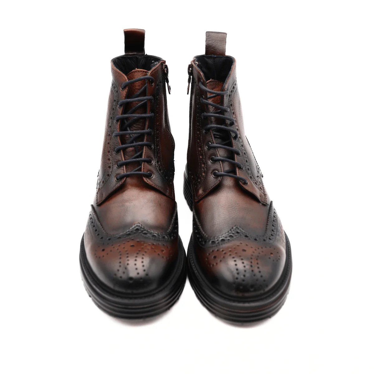 Anfibio da uomo di F.LLI RENELLA, realizzata in pelle sfumata cuoio con lavorazione all’inglese. Interno e sottopiede, non estraibile, foderati in pelle. Chiusura con laccio e zip laterale. Suola in gomma carroarmato antiscivolo.