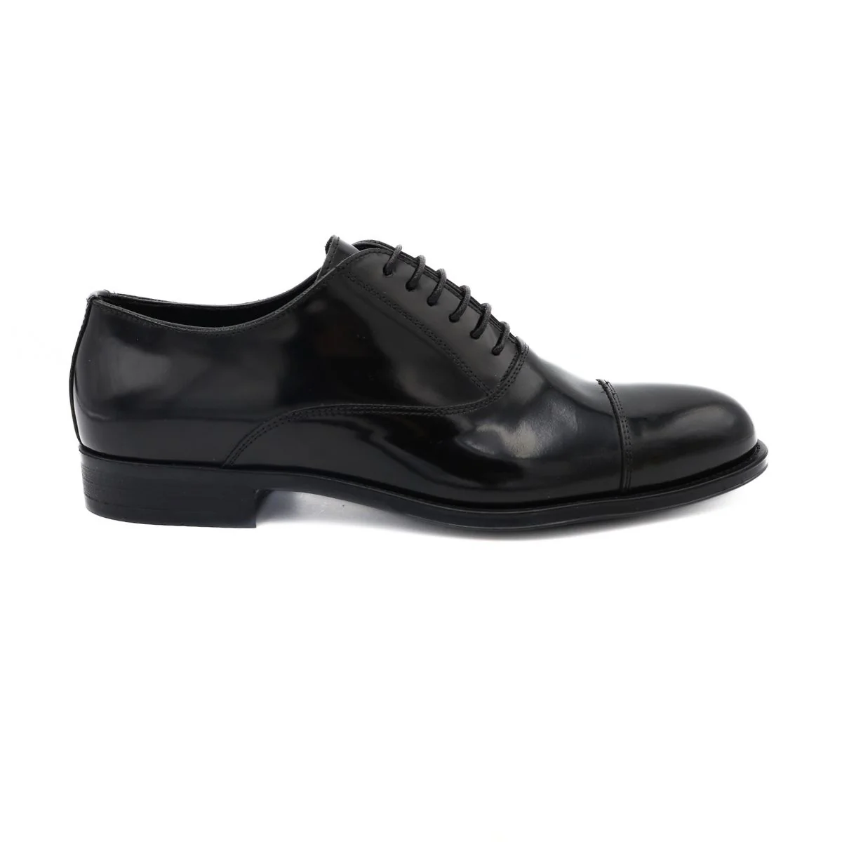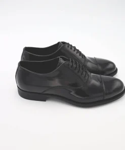 Scarpa stringata da uomo firmata FRANCO FEDELE. Realizzata in pelle nera spazzolata con un elegante puntale, offre comfort grazie alla fodera interna e al sottopiede in pelle non removibile. La suola in gomma garantisce una camminata stabile e sicura. Esclusiva e raffinata, per una calzatura senza pari.