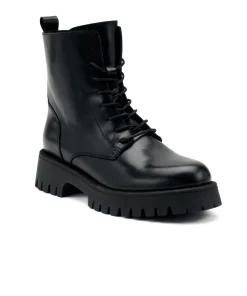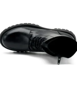 Anfibio da donna di FRAU realizzato in pelle nera. Interno foderato in tessuto e sottopiede non estraibile. Chiusura con laccio e zip interna. Suola in gomma.