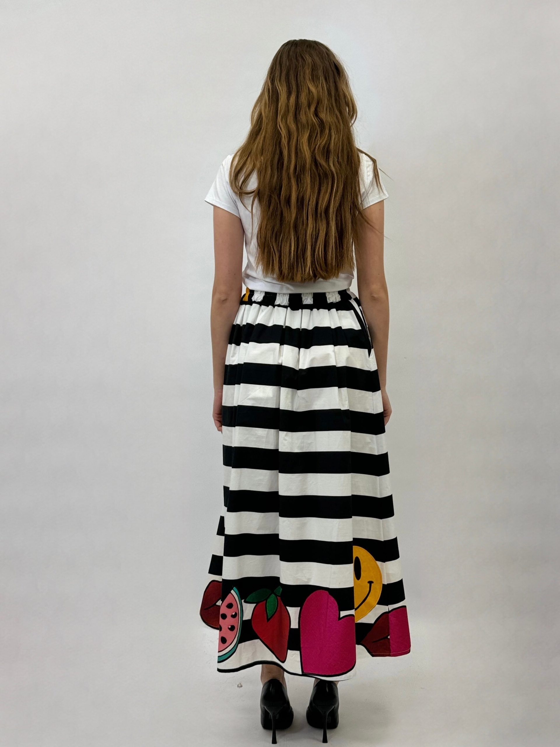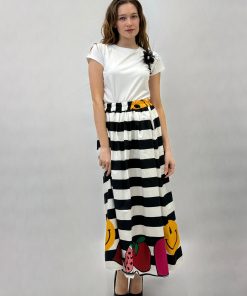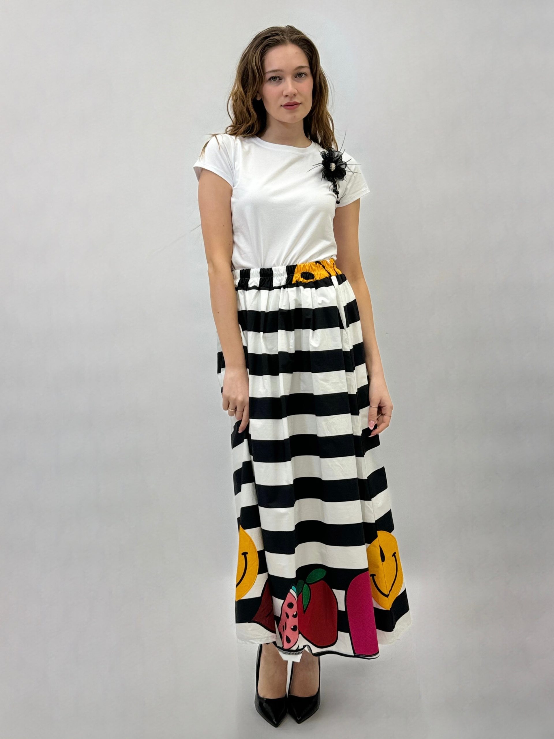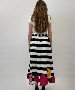 Gonna a righe con dettaglio stampe.