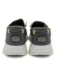 Scarpa sportiva da uomo di HEY DUDE, realiazzata con una tomaia in mesh traspirante color grigio scuro. Calzata easy-on con lacci elastici. Interno in tessuto e plantare estraibile in morbidissima schiuma. Suola in gomma ultra leggera. La linea Sirocco Sport Stripe unisce funzionalità e stile, ideale per qualsiasi occasione.