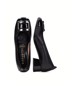Aggiungi un tocco nuovo ai tuoi outfit con la ballerina di HISPANITAS. Realizzata con un tomaia in pelle nera e un accessorio argento per un decoro unico. Con sottopiede in triflow con gel system che da comfort e assorbe gli urti e una suola in gomma per massima stabilità, e tacco liscio nero (altezza: 3,5cm).