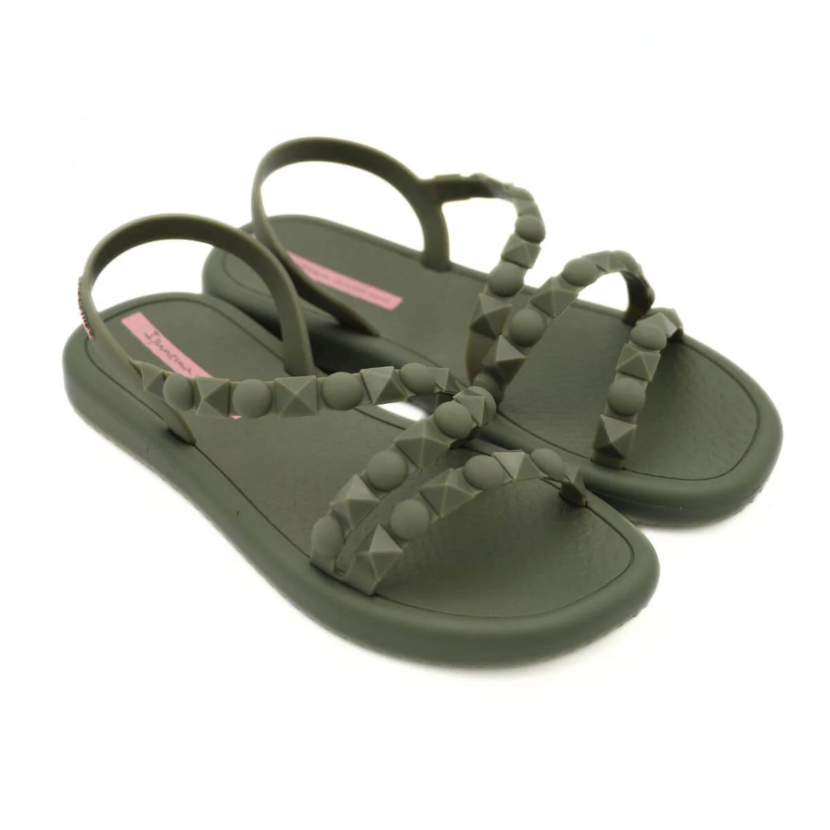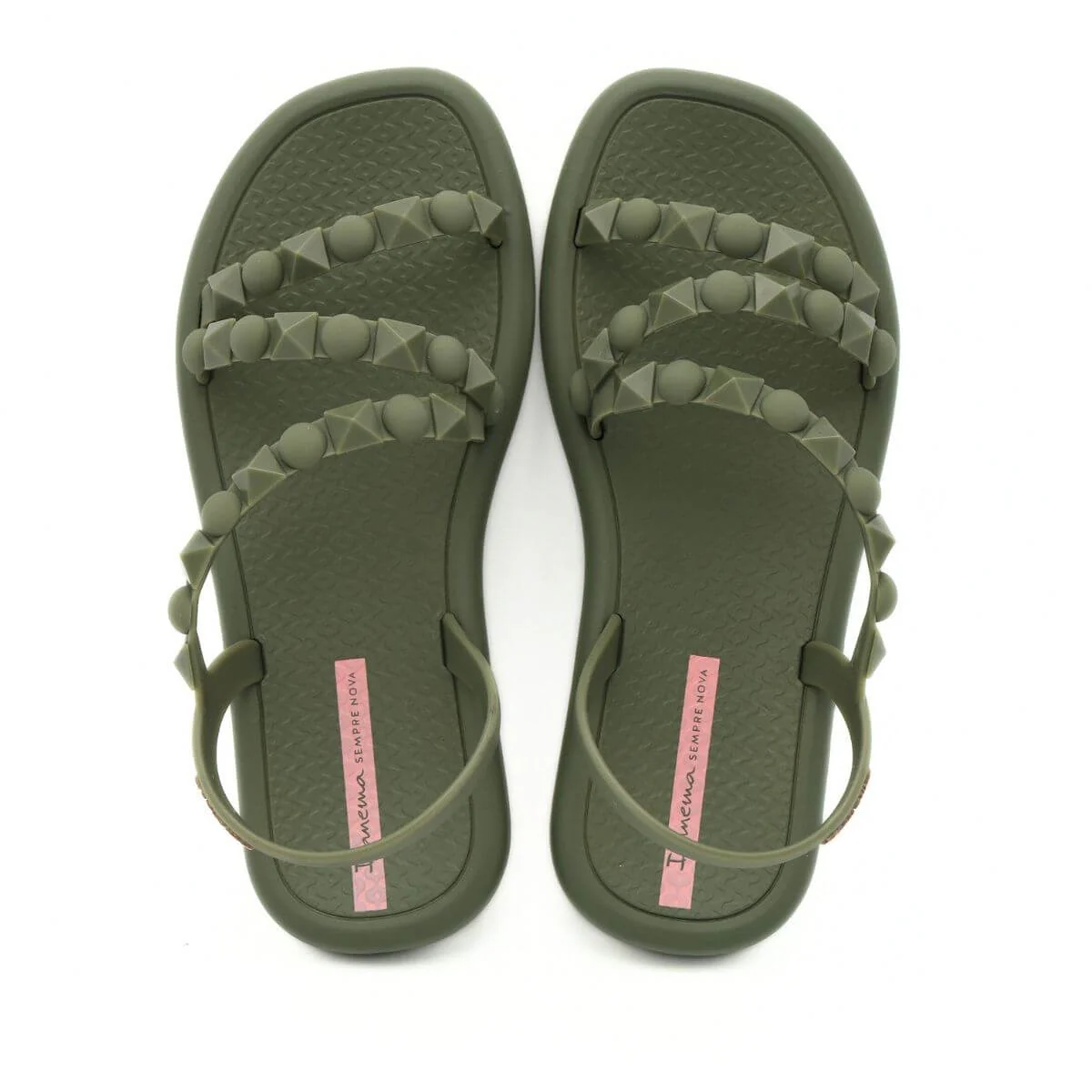 Un sandalo da donna di IPANEMA dal look più sofisticato, con suola rialzata e contorni arrotondati. Questo nuovo sandalo con borchie e sfere è slip-on, realizzato con Flexpand, un materiale riciclabile al 100% e vegano.
