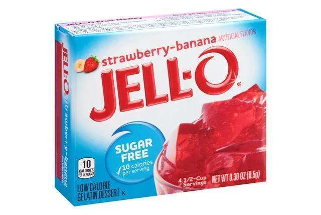 Jell-O Strawberry-Banana Gelatina Sugar Free preparato per gelatina dalla consistenza perfetta al gusto di fragola e banana. Facilissima da fare con la sola aggiunta di acqua! Senza zucchero! Divertiti con i tuoi amici con questo delizioso preparato per gelatina senza zucchero!