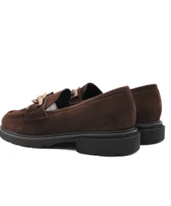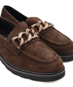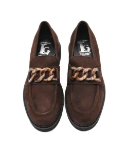 Mocassino donna di LUCA GROSSI. Realizzato in camoscio color marrone, con catena multicolore, Internamente foderato, morbido soffietto nel sottopiede rifinito in pelle. Suola in gomma. Calzatura ideata, disegnata e realizzata in Italia, prodotto made in Italy.