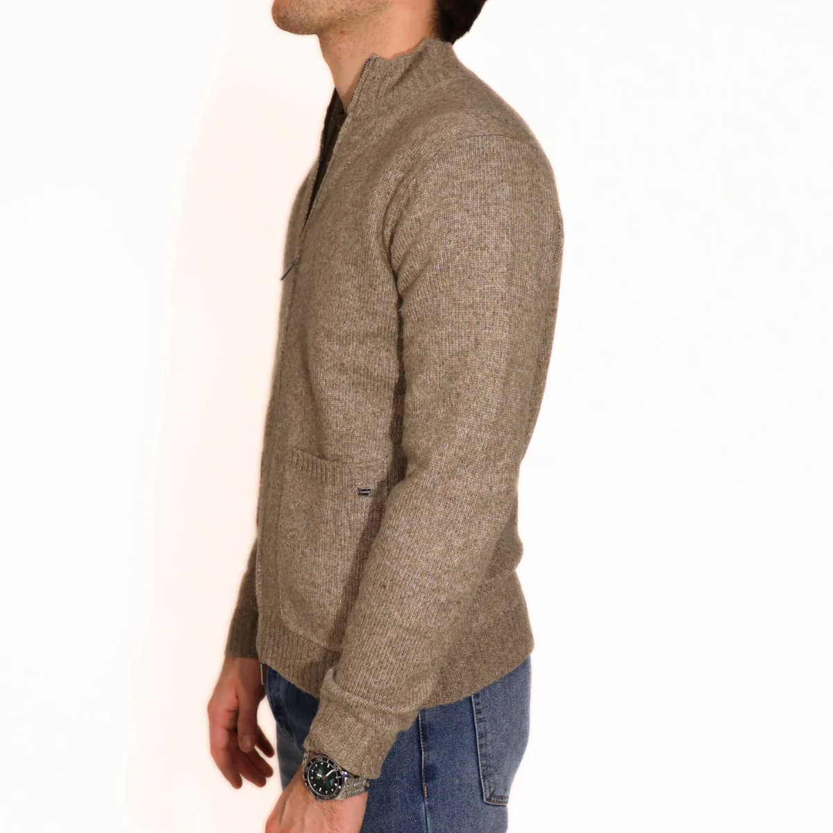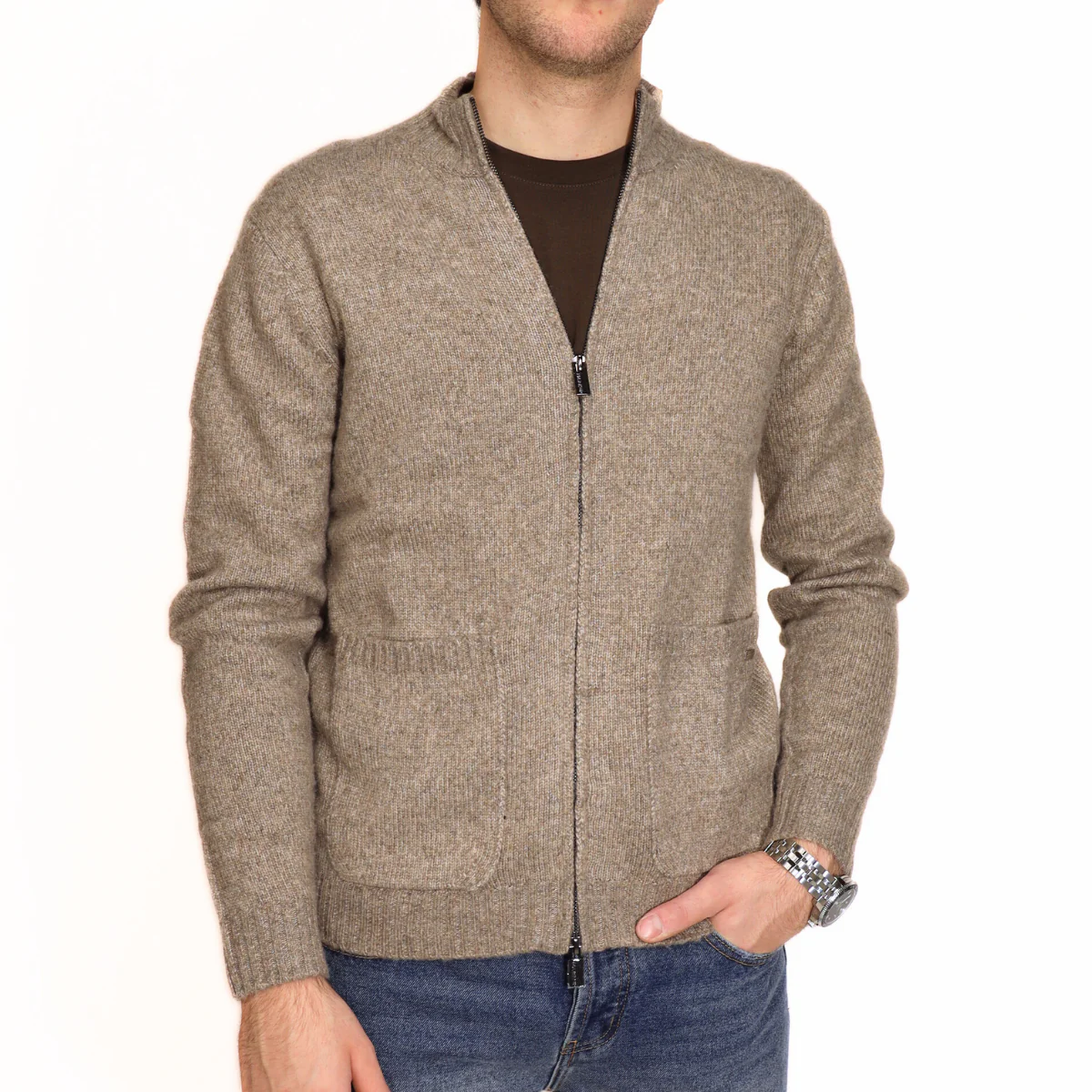 Maglione da uomo di MARKUP in poliestere beige con chiusura con zip. Giro collo.