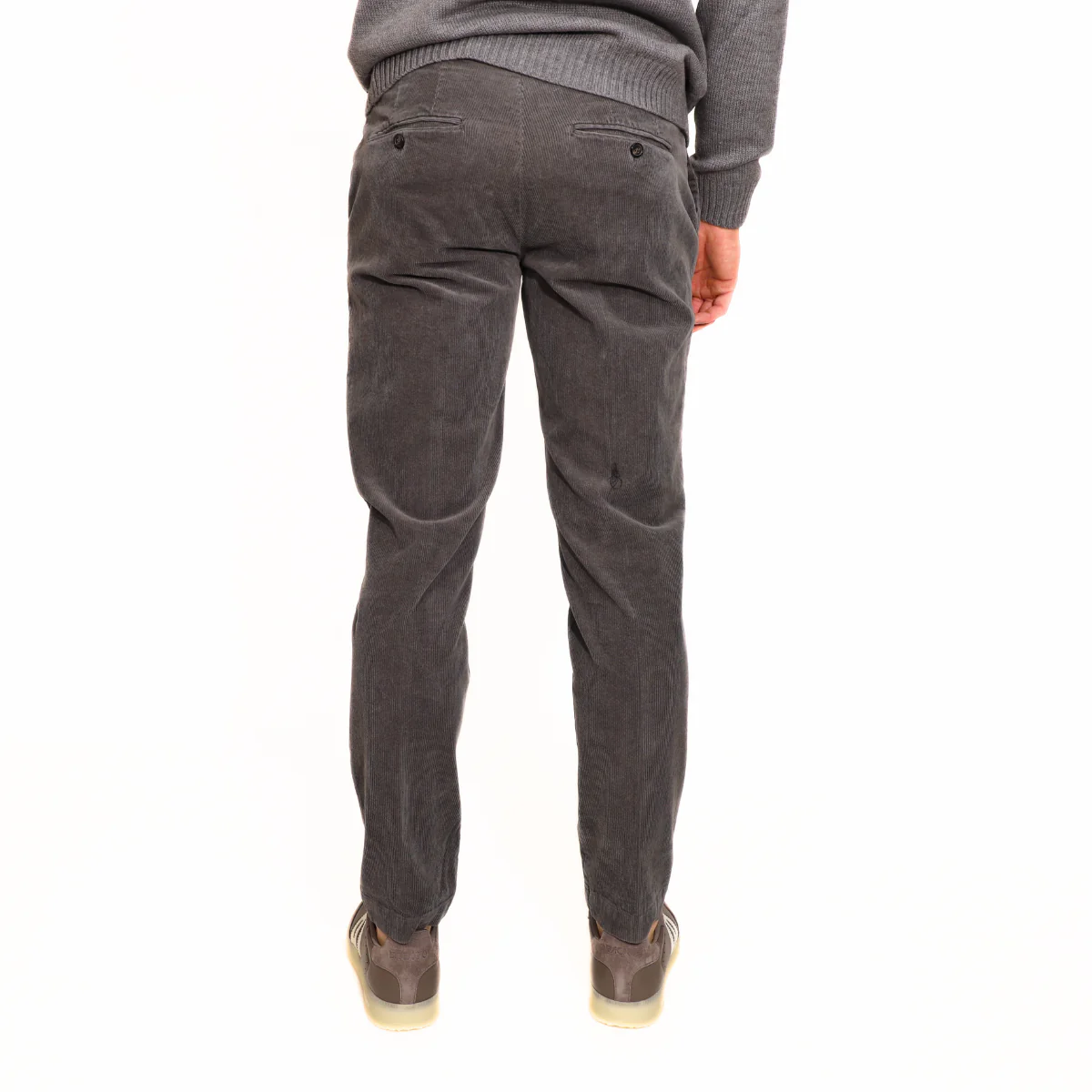 Pantaloni modello chinos da uomo di MARKUP realizzati in cotone grigio a costine. Presentano una chiusura con bottone e zip e tasche frontali e posteriori. Vestibilità regolare.