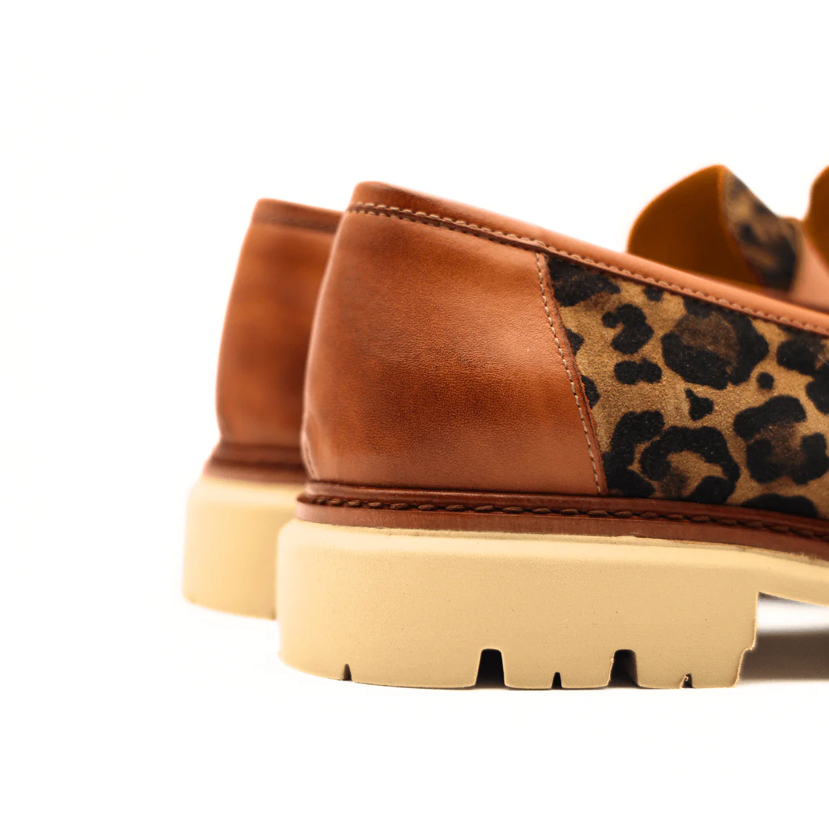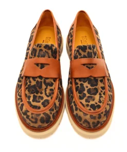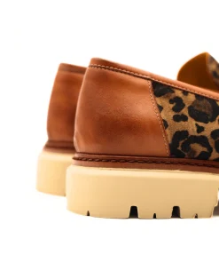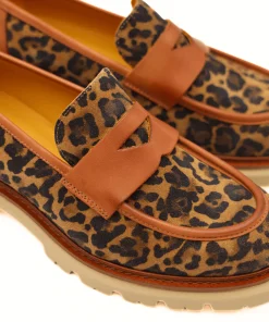 Mocassino di MAT20 realizzato in crosta di camoscio animalier e pelle cuoio, con guardolo in cuoio a contrasto. Interno e sottopiede, non estraibile, foderati in pelle. Suola in gomma XL EXTRALIGHT® con battistrada carroarmato.