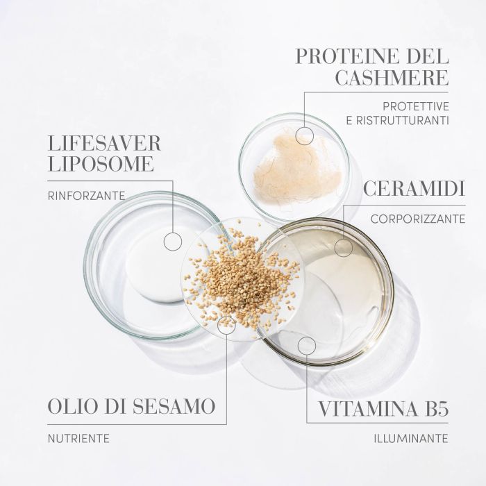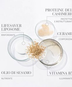 Formulato con Ceramide la quale dona grande lucentezza e forza ai capelli, protegge il colore, ha un effetto lisciante e anticrespo. Inoltre crea una barriera protettiva sulla pelle e sui capelli, che aiuta a prevenirne la rottura nel tempo.