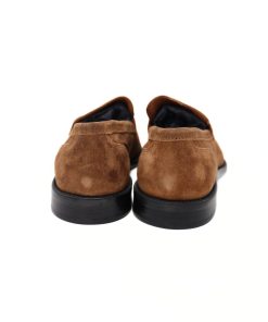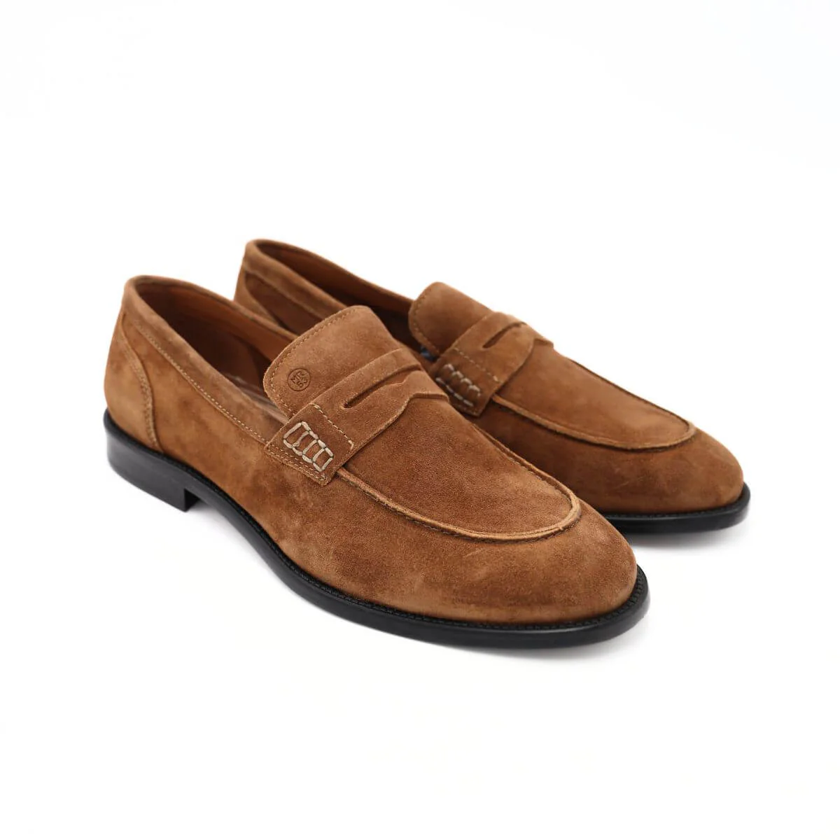 Mocassino da uomo di MINORONZONI. Tomaia realizzata in pelle scamosciata color cuoio con mascherina. Interno e sottopiede (non estraibile) foderati in pelle e suola in gomma.