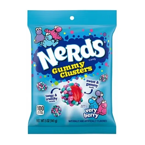 Sei un nerd delle Nerds? Allora devi assolutamente provare la versione Gummy Clusters! Un dolce cuore gommoso racchiuso dalle famose caramelline ai frutti di bosco è pronto ad esplodere di sapore. Tutto ciò che serve è un morso! Scopri Nerds Gummy Clusters Very Berry 142g!