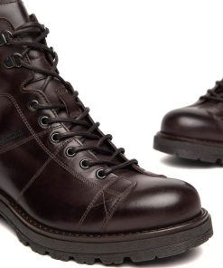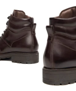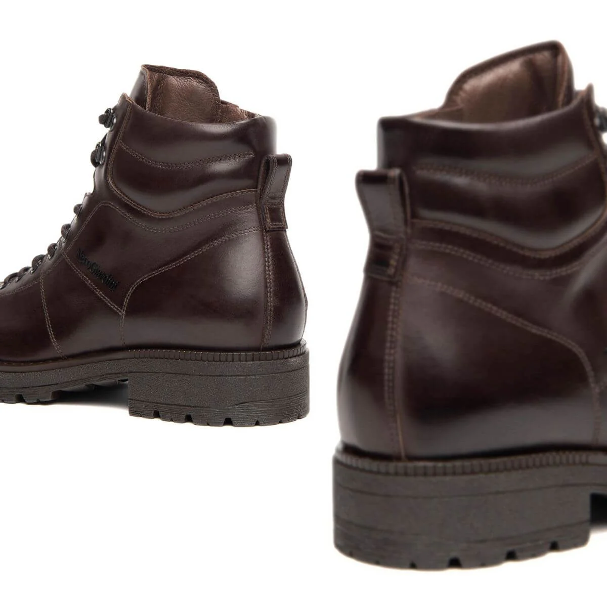 Anfibio di Nero Giardini, personalità e stile unico. Realizzato in pelle color marrone con gancetti e chiusura con zip unilaterale. Interno e sottopiede, estraibile, in pelle. Suola in gomma carrarmato.