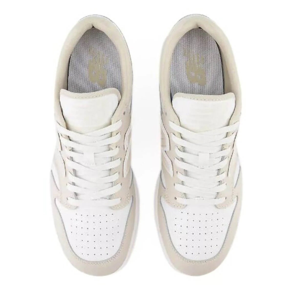 Sneakers, unisex, di NEW BALANCE modello basket 480 color beige e bianco. Tomaia realizzata in pelle e ecopelle. Sottopiede estraibile, suola in gomma resistente e allacciatura regolabile.