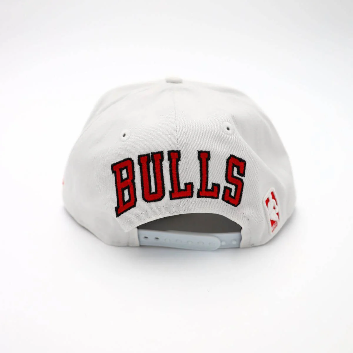 Cappellino, da uomo di New Era. Realizzato in poliestere color bianco e rosso con logo dei Chicago Bulls e “BULLS” ricamato posteriormente. Possibilità di regolarne la larghezza.