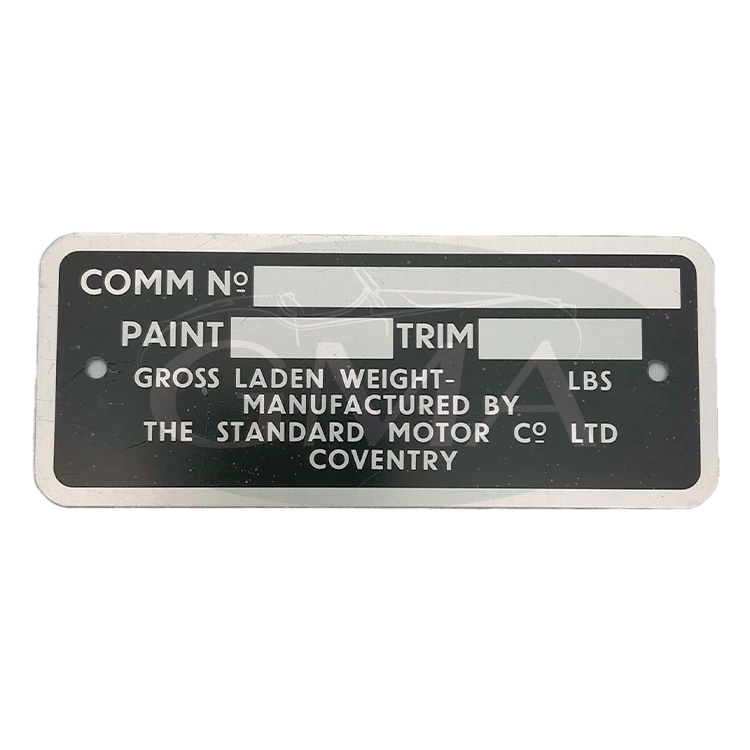 Targhetta identificazione vettura per numero di telaio e codici colore.