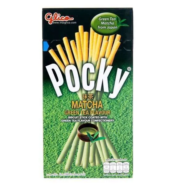 I Pocky sono un delizioso snack orientale fatto da grissini di biscotti croccanti ricoperti da una crema di tè verde Matcha.