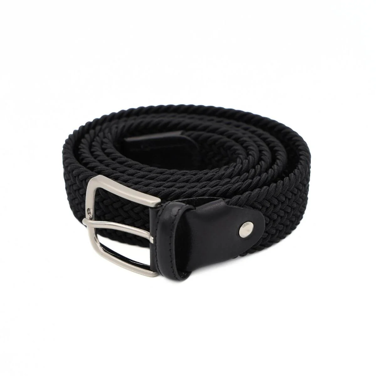 Cintura da uomo di PRATENICE in tessuto elastico intrecciato nero.