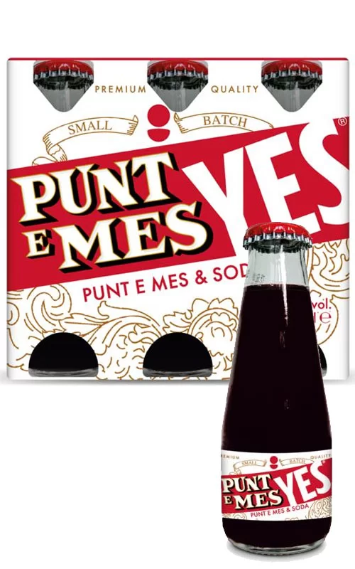 Punt e Mes Yes. aperitvo poco alcolico: il classico Punt e Mes con aggiunta di soda, ideale servito freddo con una scorza di arancia.