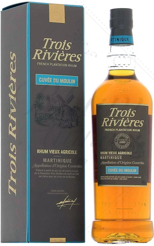 La piantagione Trois Rivières è una delle più antiche della Martinica, risale infatti alla metà del XVII secolo, quando la canna da zucchero veniva frantumata con l’ausilio dei mulini a vento: ancora oggi, su ogni bottiglia di Trois Rivières troviamo l’emblema del mulino. Color ambra profondo, al naso si apre con sentori di quercia e speziati, note di frutta cotta, succo di prugna, budino e crema pasticcera, mentre al palato le sensazioni sono di cedro, cuoio, caramello mela e noce moscata.