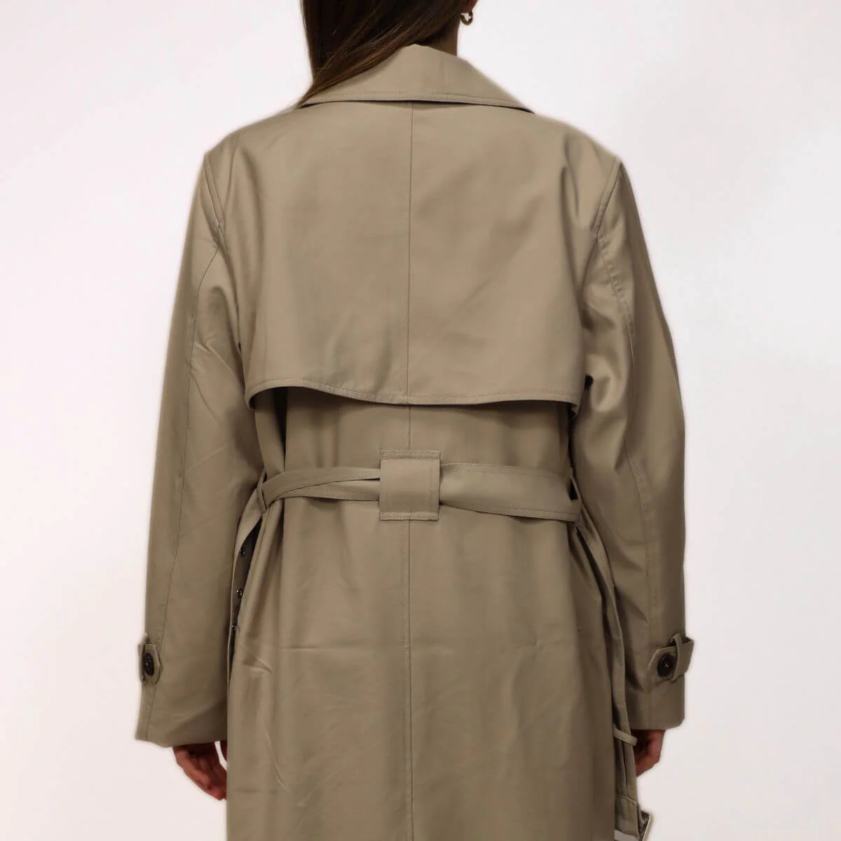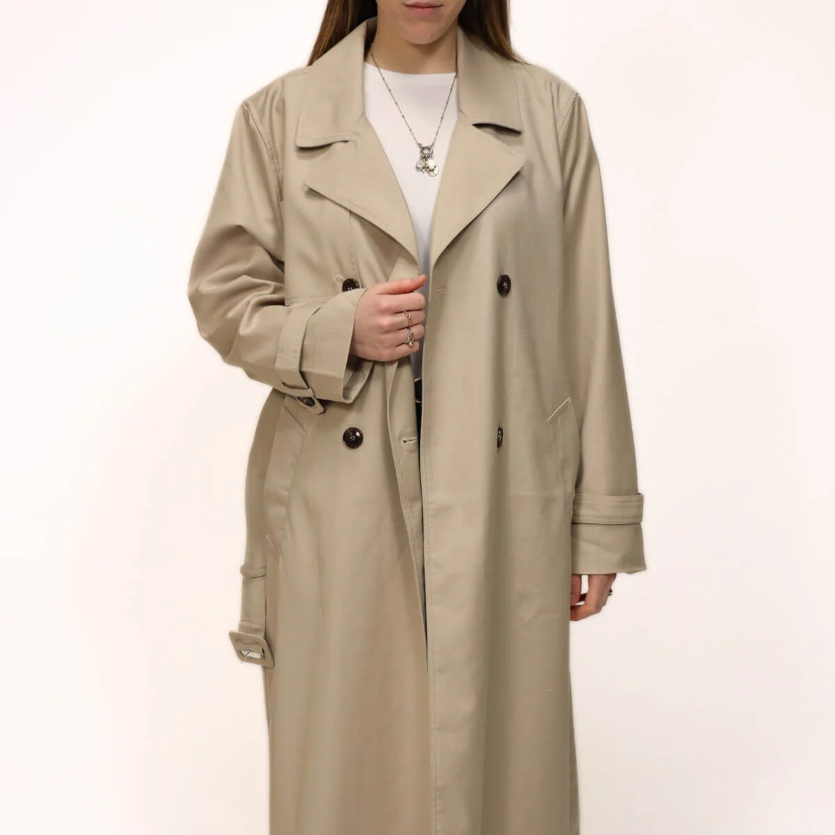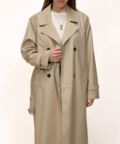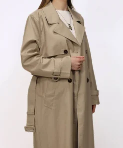 Trench sabbia di RINO&PELLE doppiopetto lungo e trendy, perfetto per ogni occasione. Questo imperdibile trench da donna presenta una chiusura a doppio petto con bottoni, un colletto con revers, una cintura in vita removibile abbinata, tasche laterali a fessura, cinturini con bottoni automatici sui polsini e uno spacco sul retro.