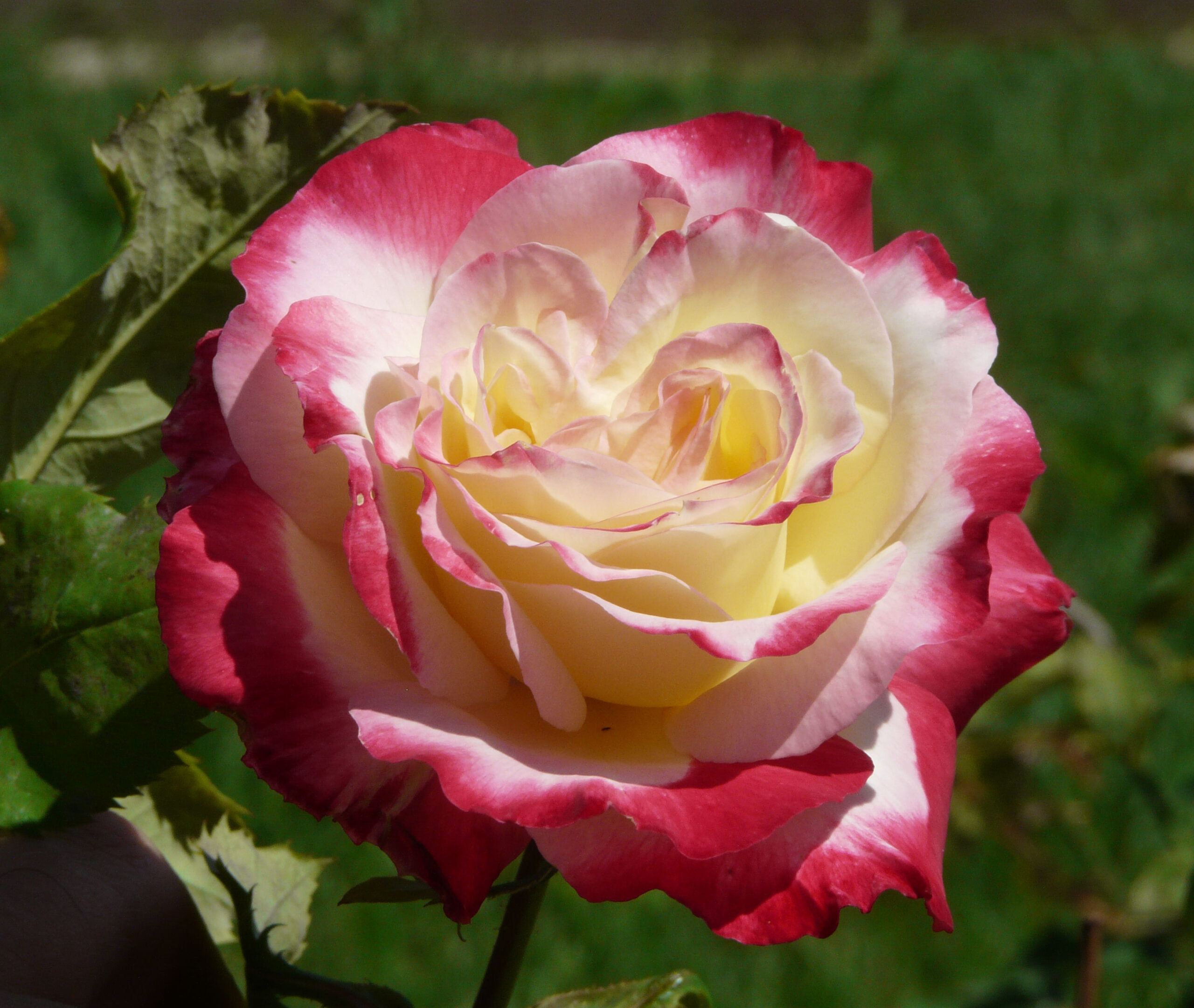 La Rosa Double Delight è stata ibridata negli Stati Uniti da Swim & Ellis nel 1977, è ritenuta una delle rose più famose e coltivate. I boccioli inizialmente sono color crema con bordature rosse sulle parti esterne dei petali. Con l’ulteriore apertura del fiore, il colore rosso si allarga a buona parte della corolla lasciando solo il cuore color crema. I fiori della Rosa Double Deligth sono doppi a coppa, misurano 13 cm di diametro e sono composti da circa 40 petali, il profumo delle rose è intenso con note speziate. Il cespuglio cresce rigoglioso in altezza raggiungendo i 120 cm, il fogliame è denso verde opaco, i rami sono lunghi e robusti, i fiori possono essere singoli per ramo ma anche in piccoli gruppi da 2 o 3.
