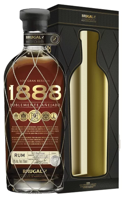 Gran Reserva 1888 di Brugal, rum della Repubblica Dominicana, è doppiamente invecchiato, affina cioè per i primi 8 anni in botti di rovere americano ex-bourbon e per altri 4-6 anni in botti di rovere rosso spagnolo ex-sherry oloroso. Color ambra scuro, si apre al naso con sentori intensi di frutta secca unite a note legnose. Il sorso è dolce, molto lungo, per un finale sapido e caramellato.