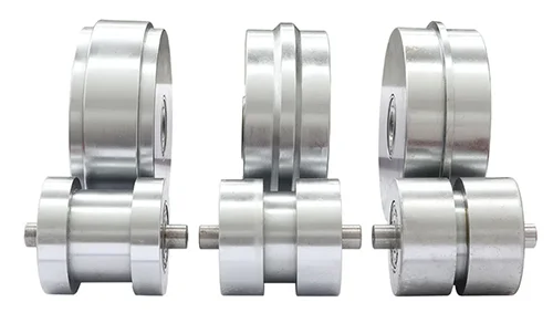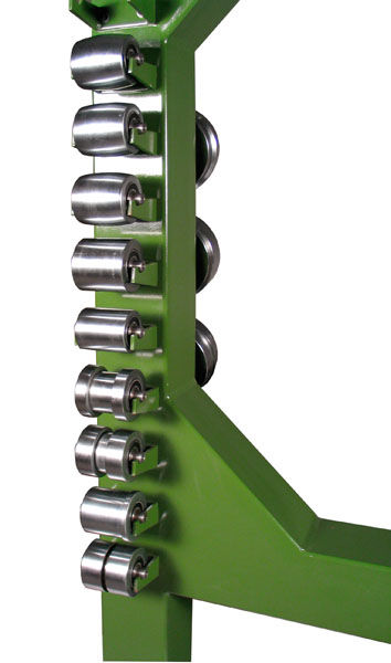 Il rullo inferiore può essere ruotato di 90° per l’utilizzo di pezzi di grandi dimensioni. Questa ruota inglese può affrontare senza problemi impieghi gravosi. Contiene un meccanismo di cambio rapido per cambiare facilmente i rulli di formatura. Grazie alla regolazione manuale si può calibrare in modo preciso la pre ssione da utilizzare.