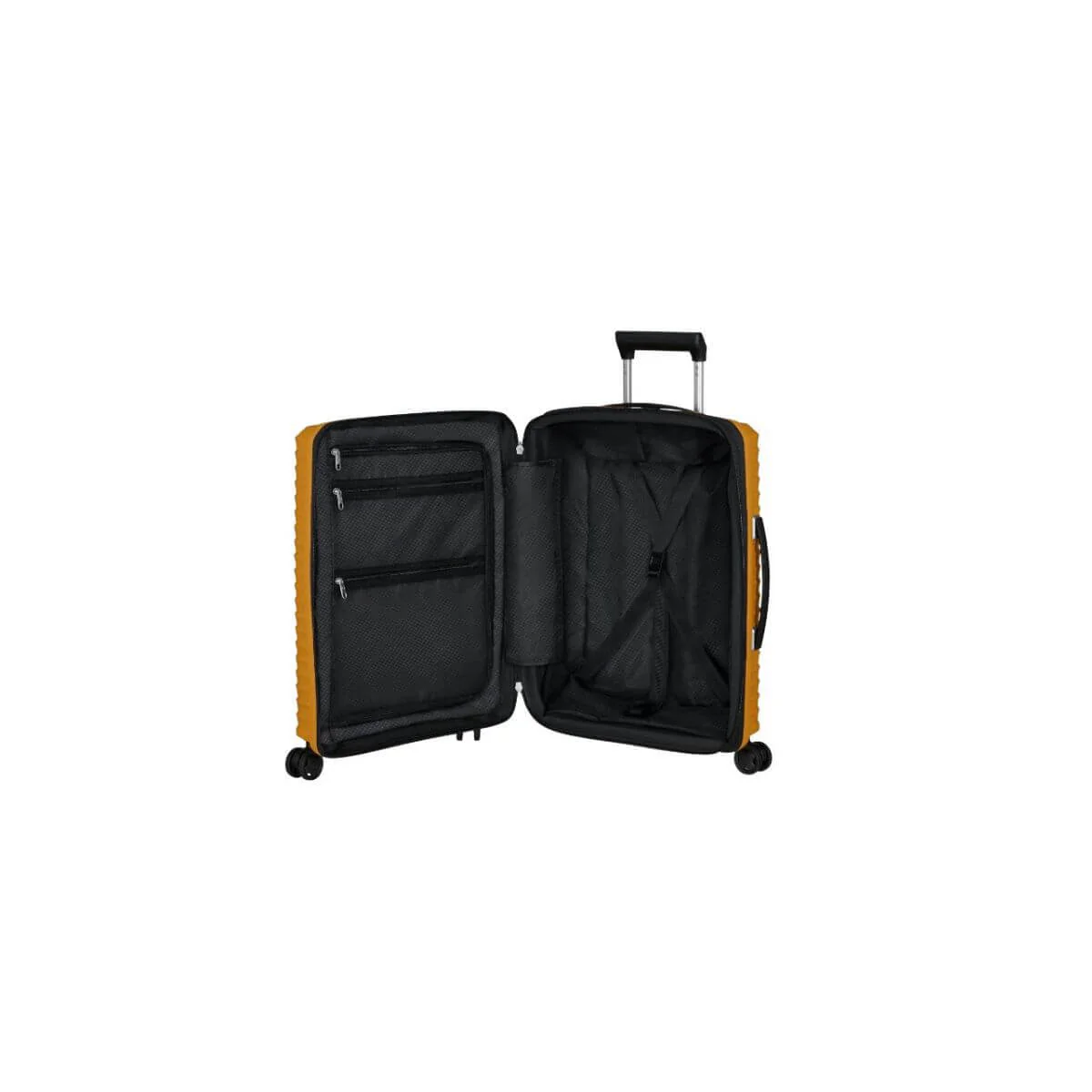 Scegli il comfort con Upscape. Goditi un viaggio grazie alla sua leggerezza, alle ruote ammortizzate shock absorbing e al rivestimento interno amovibile e lavabile. Realizzata in Polypropylene giallo ocra. Quattro ruote bidirezionali. Carrello bitubo. Valigia espandibile. Chiusura con zip e sicurezza TSA e porta USB integrata.