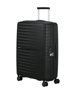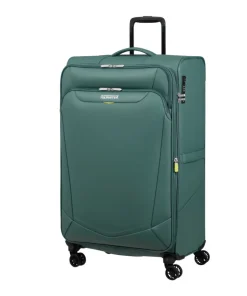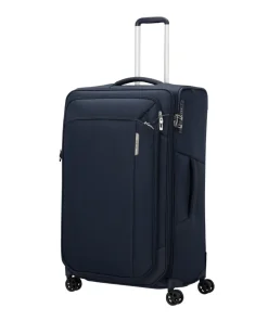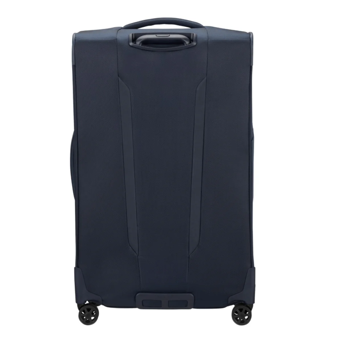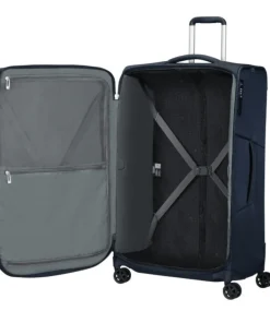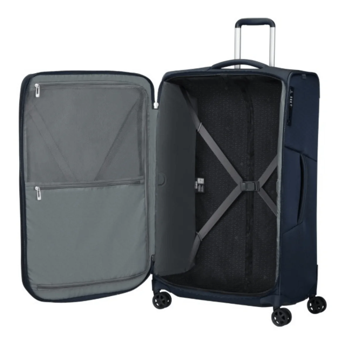 Trolley grande di SAMSONITE della linea RESPARK. La fodera interna e le cinghie interne sono realizzate con PET 100% riciclato post-consumo, parte del nostro Recyclex™ Material Technology Initiative. Unico vano porta abiti. Tasche esterne porta oggetti. Quattro ruote. Carrello bitubo. Chiusura TSA e cavetto in acciaio per una maggiore sicurezza nelle tasche esterne.