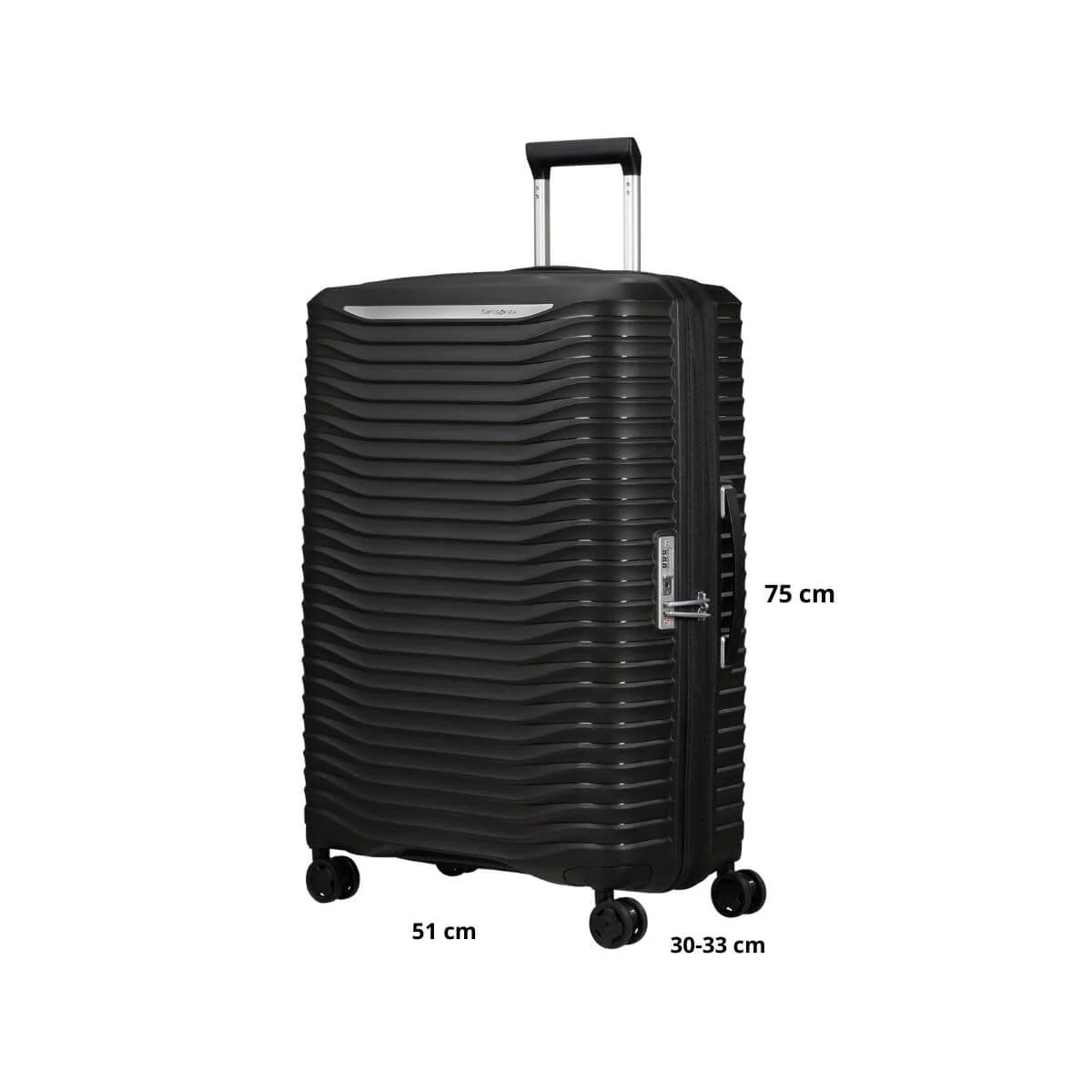 Scegli il comfort con Upscape. Goditi un viaggio grazie alla sua leggerezza, alle ruote ammortizzate shock absorbing e al rivestimento interno amovibile e lavabile. Realizzata in Polypropylene nero. Quattro ruote bidirezionali. Carrello bitubo. Valigia espandibile. Chiusura con zip e sicurezza TSA.