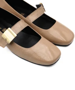 Ballerina modello bebè da donna di SAN PIERO, realizzata pelle effetto naplak beige con accessorio oro nel cinturino. Interno e sottopiede, non estraibile, foderato in pelle. Suola in gomma.