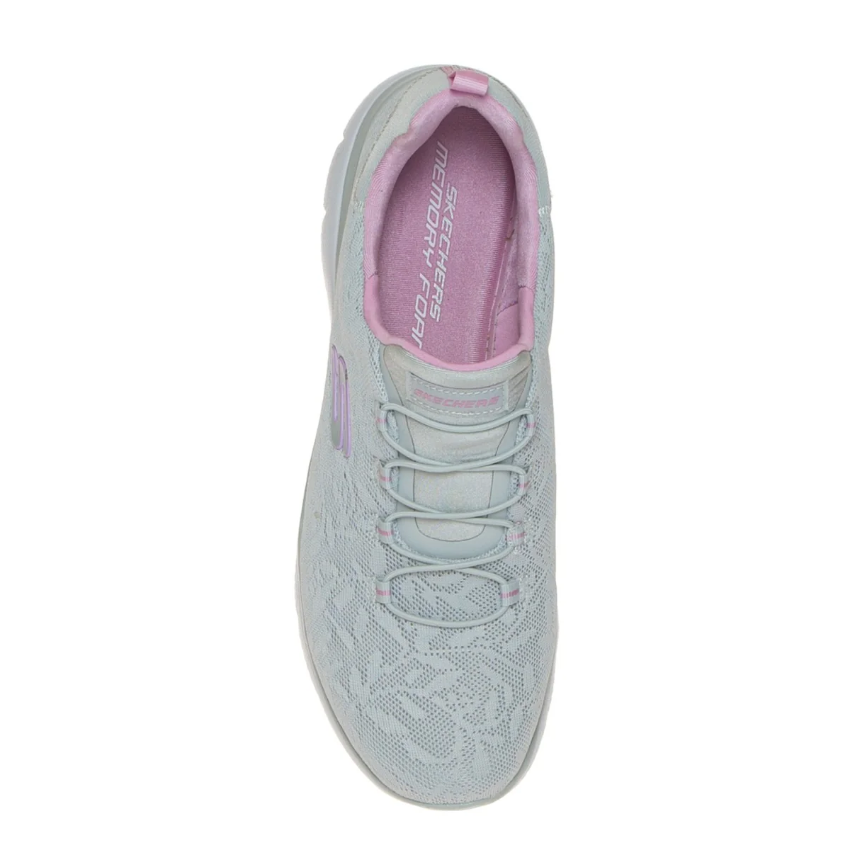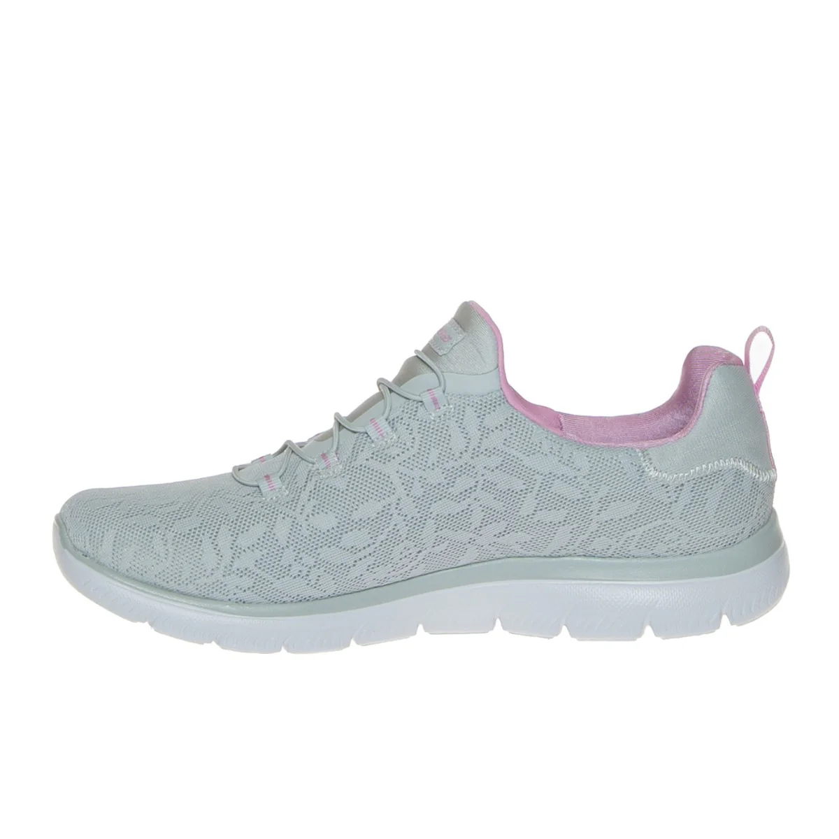 Slipon donna di SKECHERS. Tomaia realizzata in tessuto tecnico vegano grigio chiaro. Interno foderato in tessuto con sottopiede anatomico. Chiusura con lacci elastici. Suola in gomma vegan. Calzatura molto leggera. Lavabile in lavatrice a bassa temperatura.