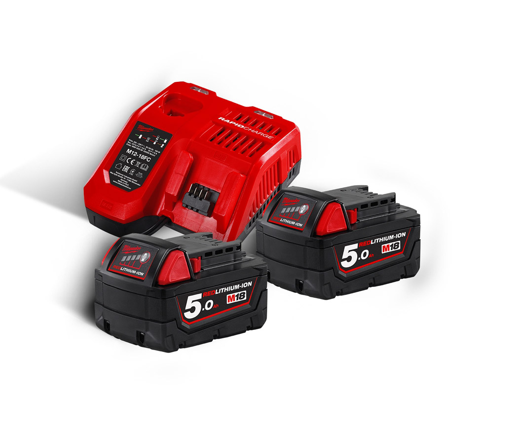 Il Soffiatore Milwakee M18 BBL-0 in KIT è fornito con 02 batterie M18 da 5.0 Ampere cod. 4932430483 e con 01 Caricabatterie cod. 4932352959 .