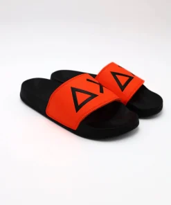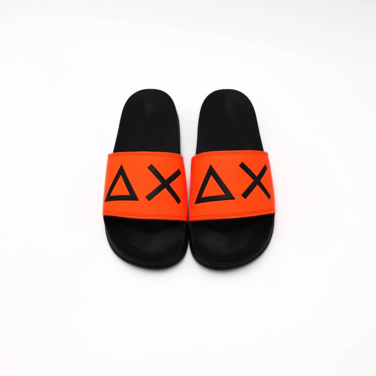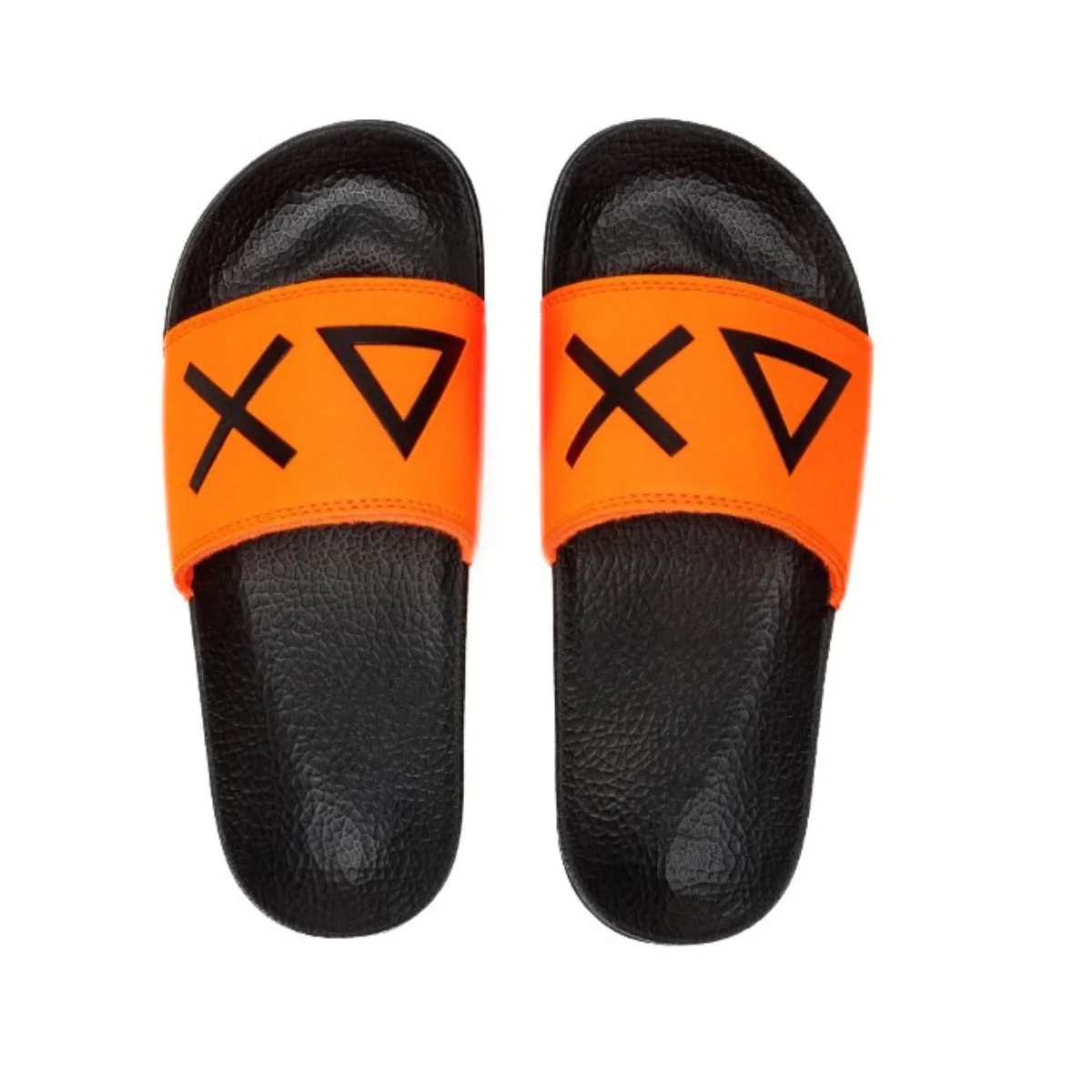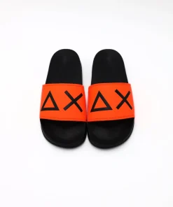 Ciabatta da uomo fascia di SUN68, realizzata in materiale tecnico arancione con logo nero e suola in gomma.